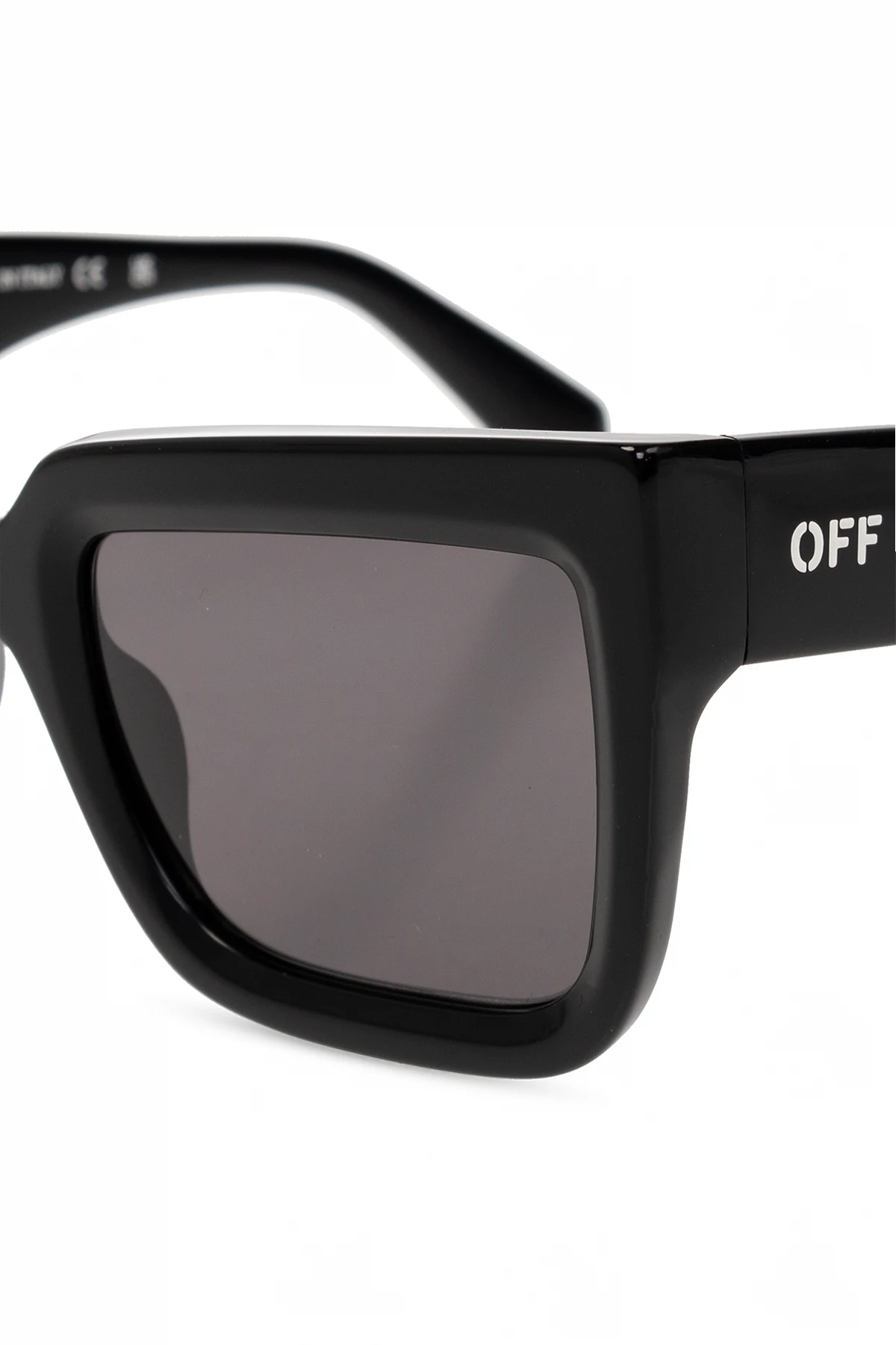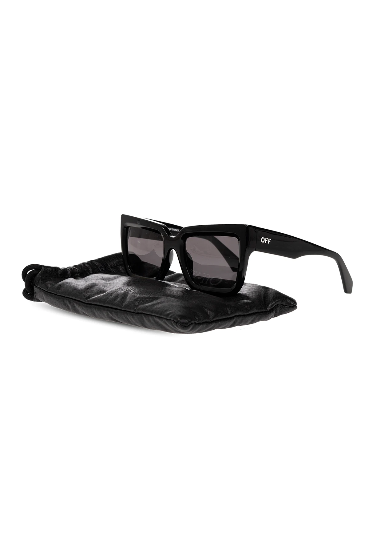 Czarne okulary przeciwsłoneczne, model ‘Firenze’ Off-White. Kwadratowe oprawki z pojedynczym mostkiem i zintegrowanymi noskami. Zauszniki ozdobione białym logo. Szare szkła z ochroną przeciw promieniom UV. Dołączone etui.