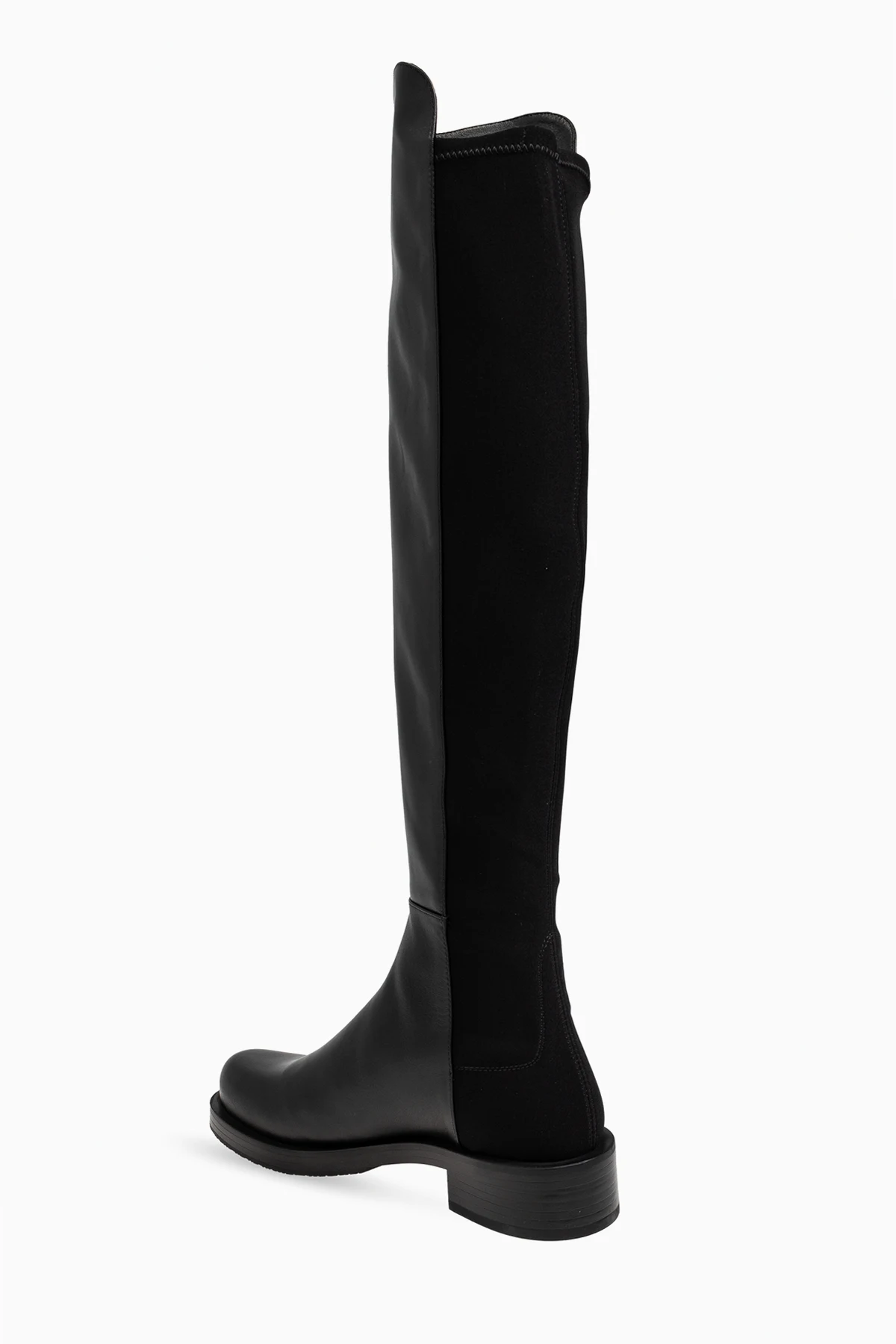 Przedstawiamy Państwu ekskluzywne kozaki 5050 zaprojektowane przez mistrza elegancji, Stuarta Weitzmana . Te czarne kozaki, sięgające powyżej kolana, to kwintesencja luksusu i wyrafinowania, idealne do każdej stylizacji.
