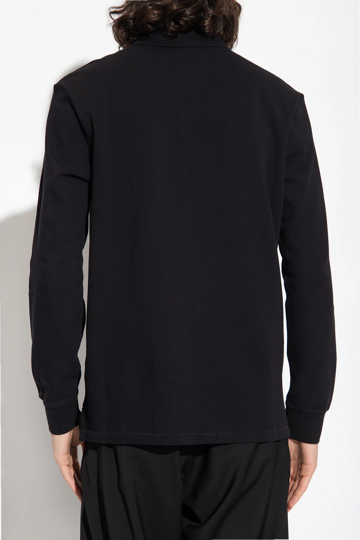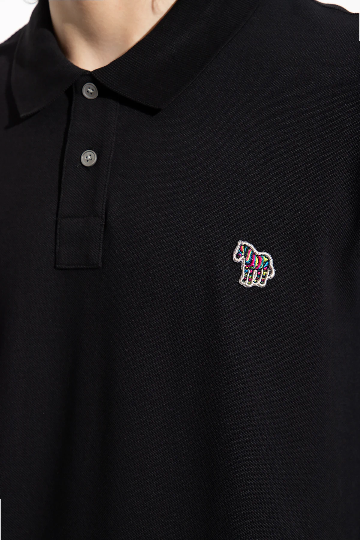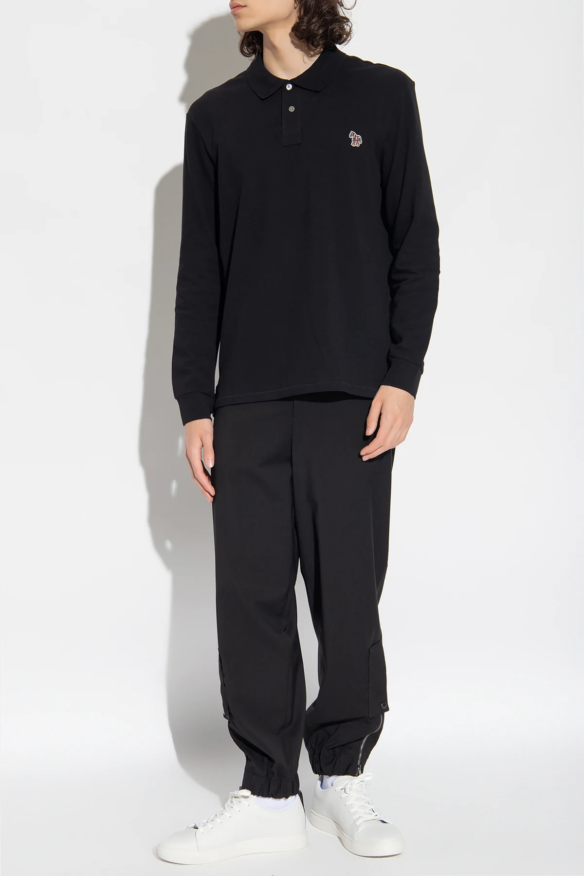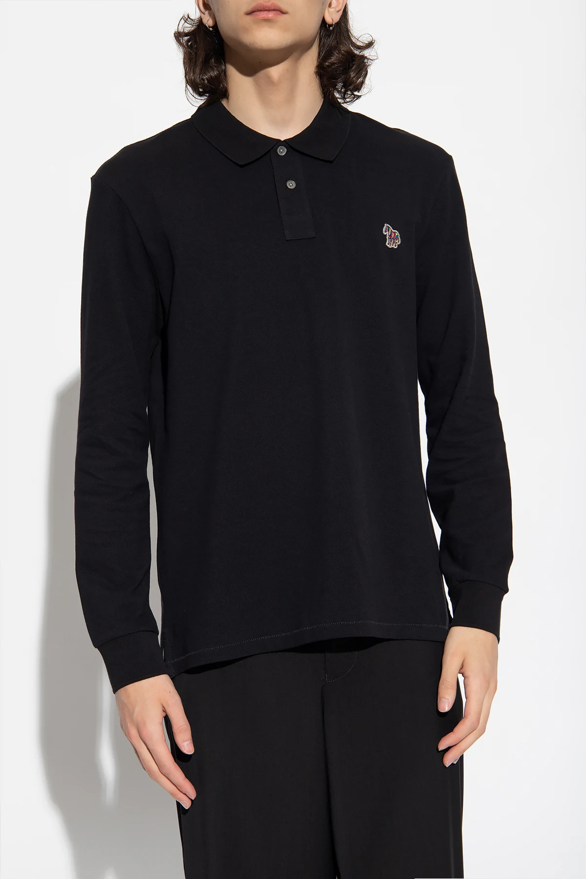 Czarne, bawełniane polo z długimi rękawami PS Paul Smith. Dekolt z kołnierzem zapinany na guziki. Z przodu kolorowa naszywka z charakterystycznym motywem zebry. Po bokach rozcięcie.