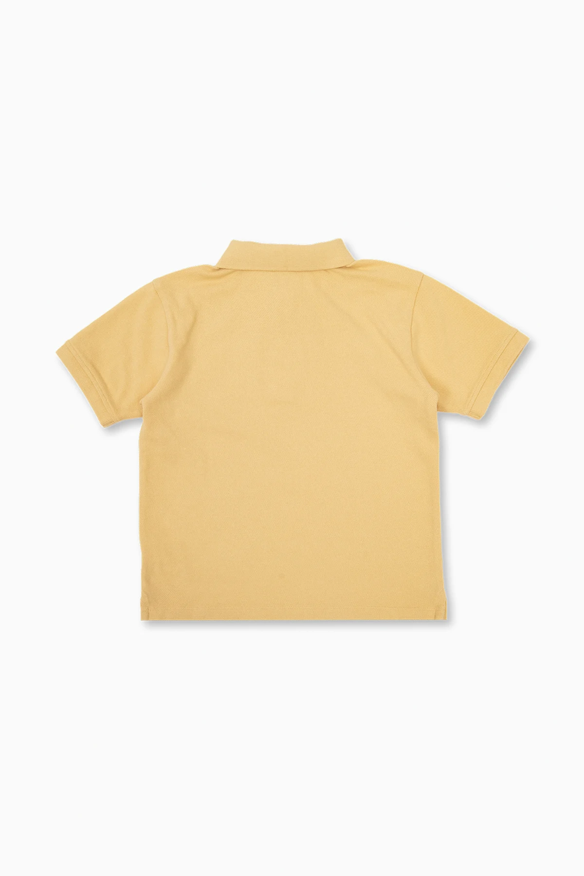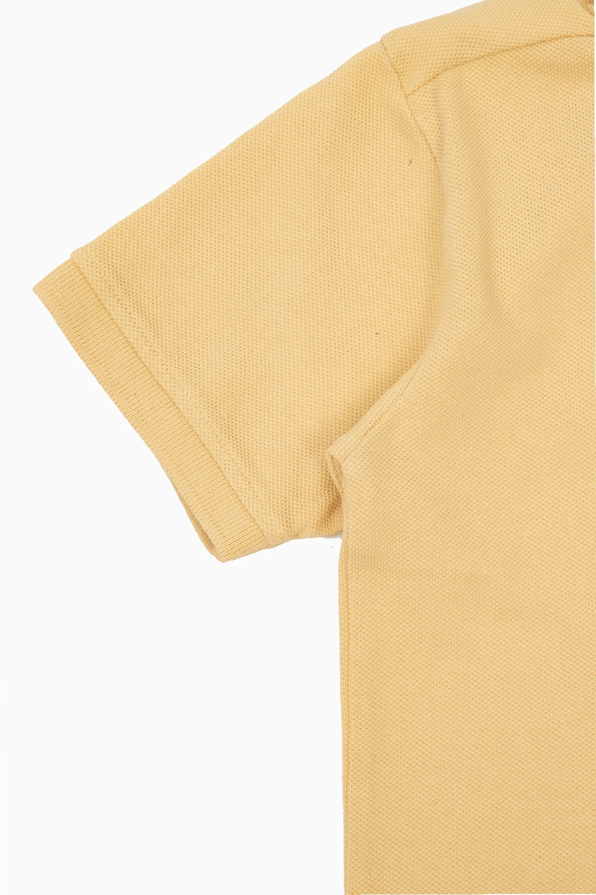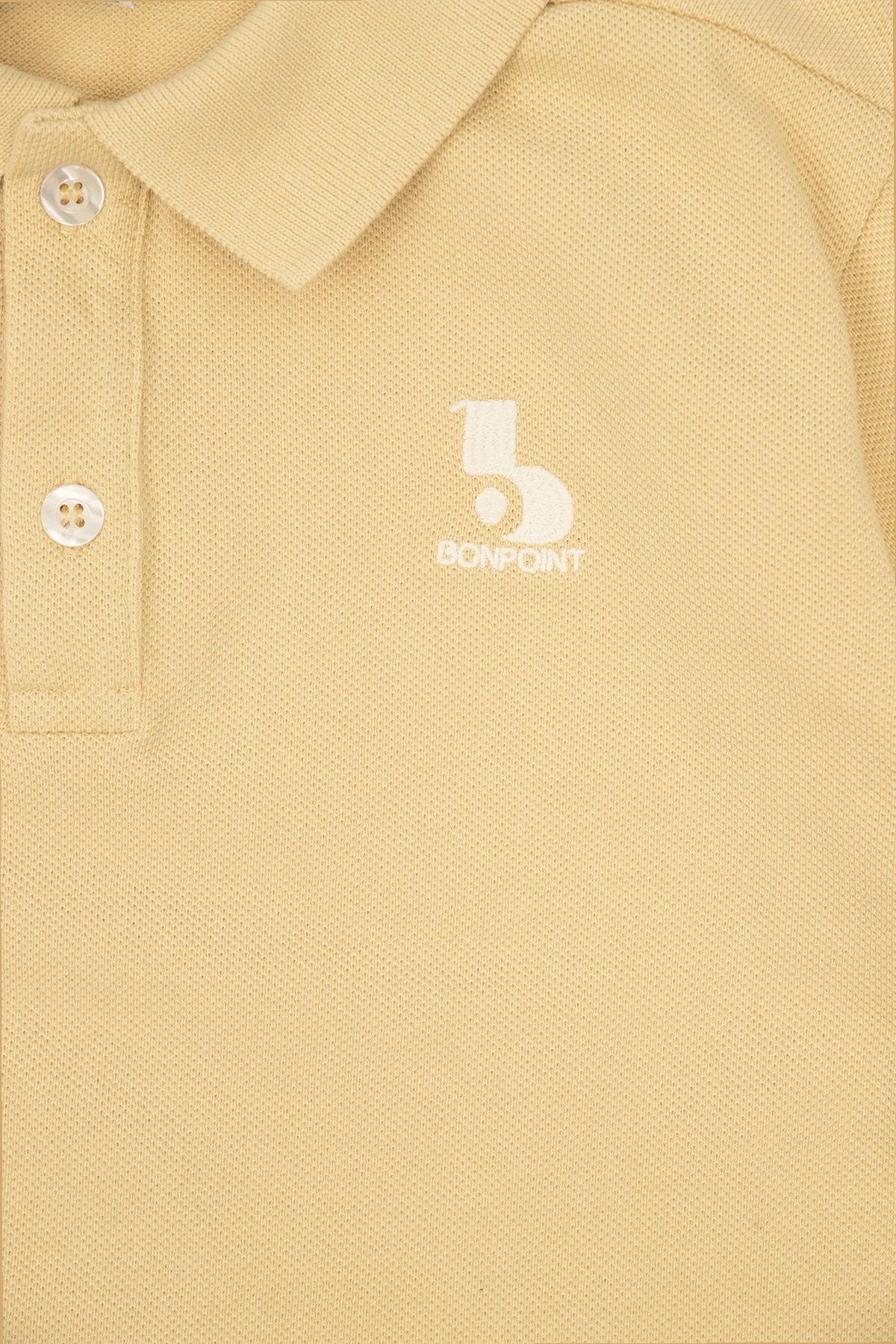 Żółte polo, model ‘Daryl’ Bonpoint. Wykonane z bawełny. Kołnierz zapinany na guziki. Z przodu białe, wyszyte logo. Krótkie rękawy zakończone ściągaczem.