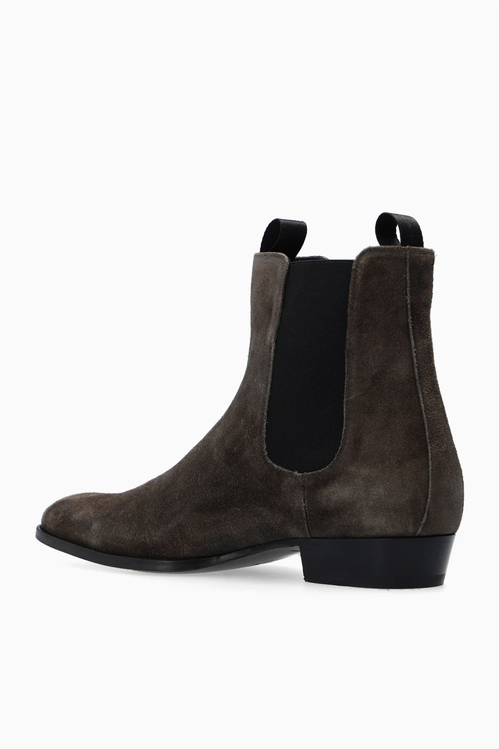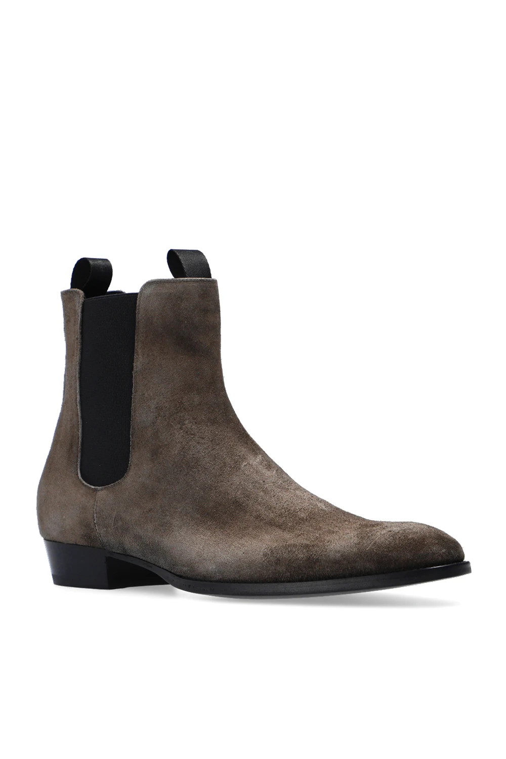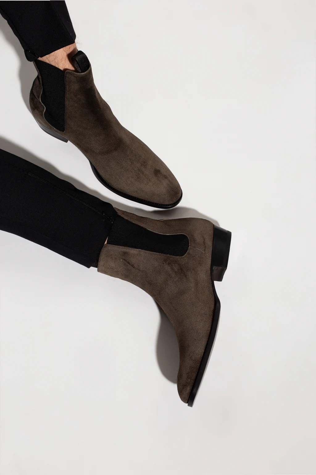 Ciemnoszare botki, model ‘Atlanta’ Giuseppe Zanotti. Wykonane z zamszu. Z boku wszyta elastyczna guma. Czarna, skórzana podeszwa.