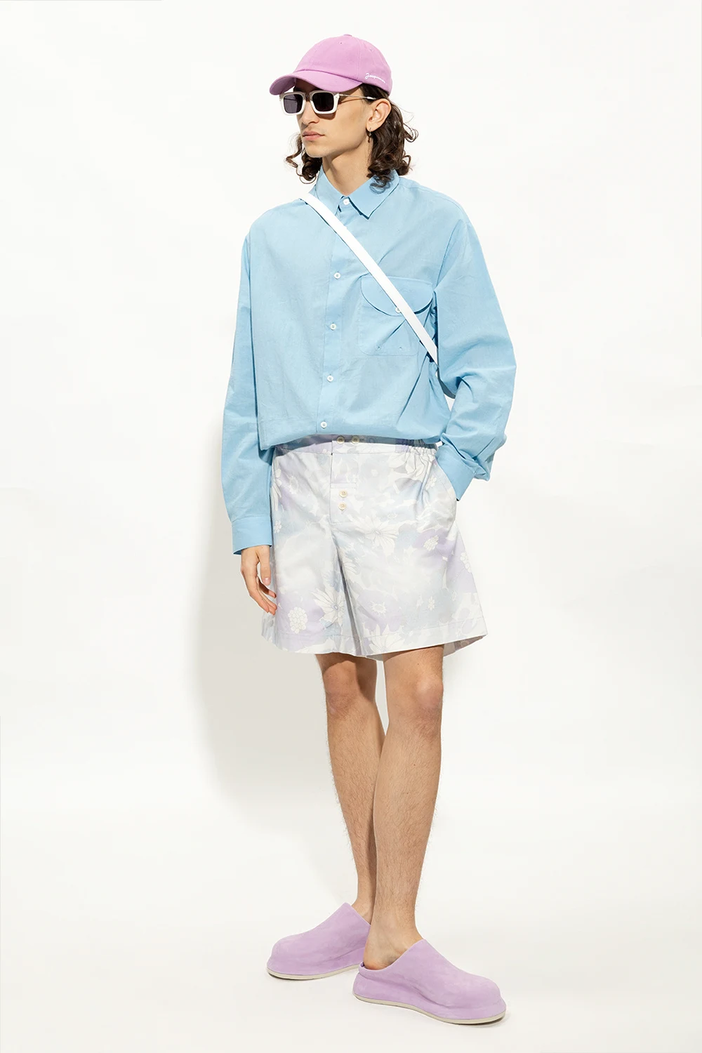 Jasnofioletowe klapki, model ‘Bricciola’ Jacquemus. Wykonane z wodoodpornego nubuku. Z tyłu ozdobione wytłoczonym logo. Amortyzowana wyściółka dla dodatkowego komfortu. Kremowa, gumowa podeszwa.