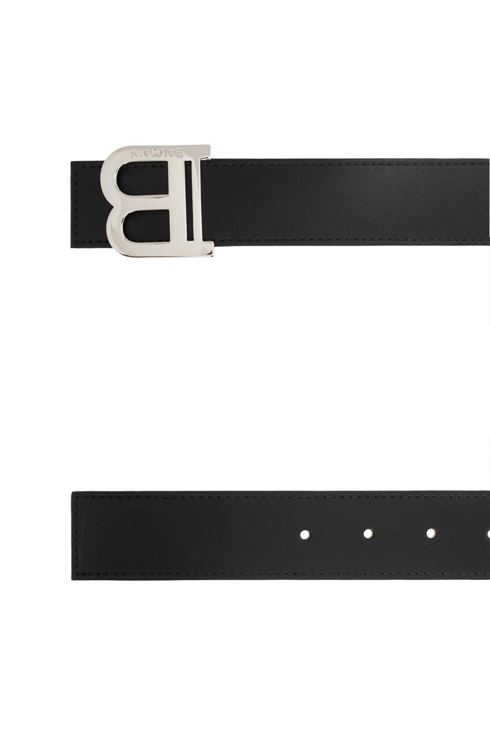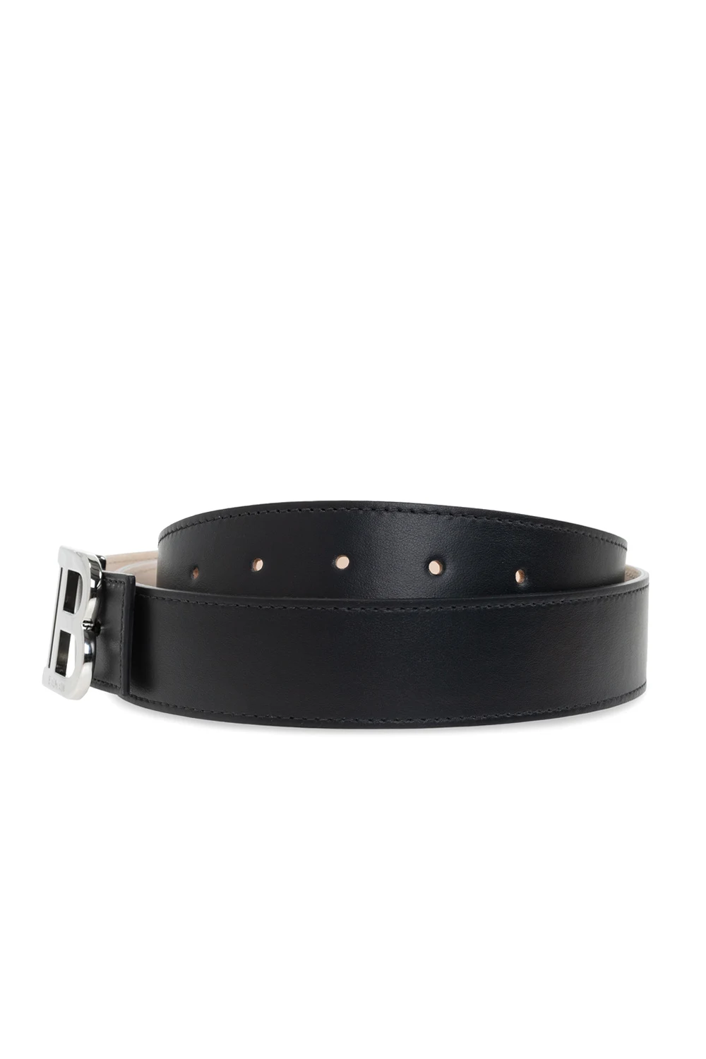 Czarny pas Balmain. Wykonany ze skóry. Wykończony klamrą z logo w kolorze srebrnym.
