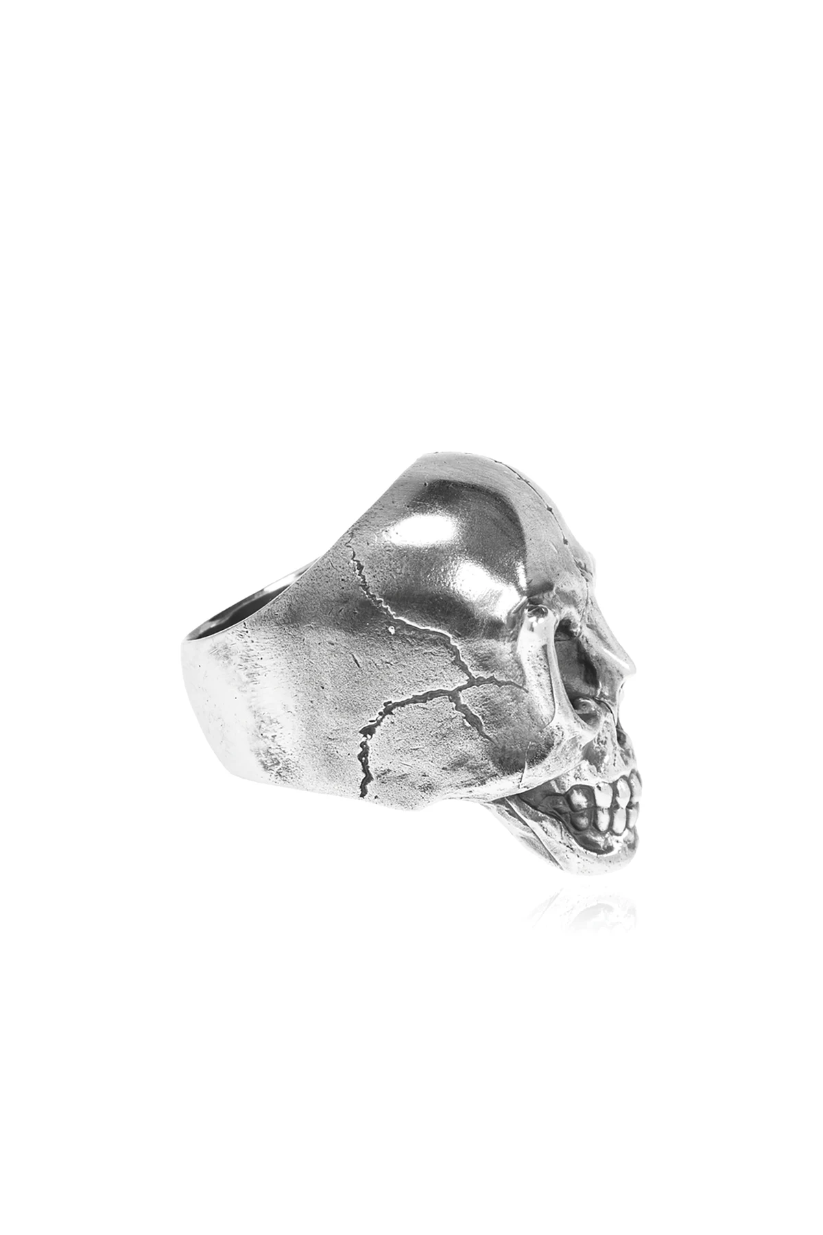 Pierścień ze srebra o próbie 950 Yohji Yamamoto. Ozdobiony detalem w kształcie czaszki.