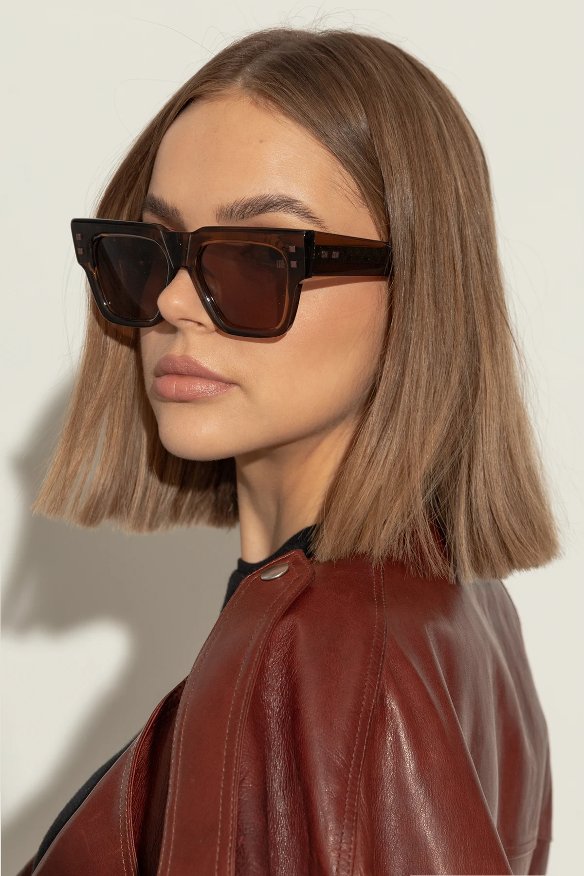 Wykonane z luksusowego acetatu o brązowym zabarwieniu.