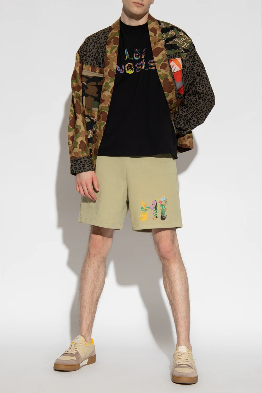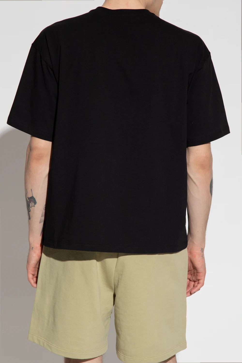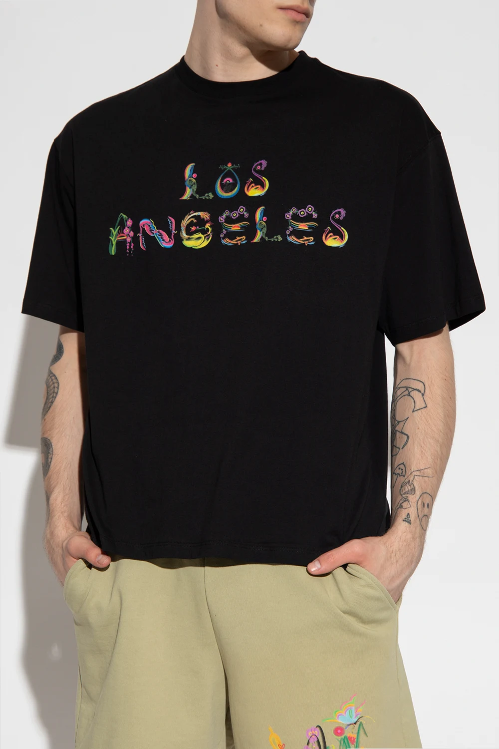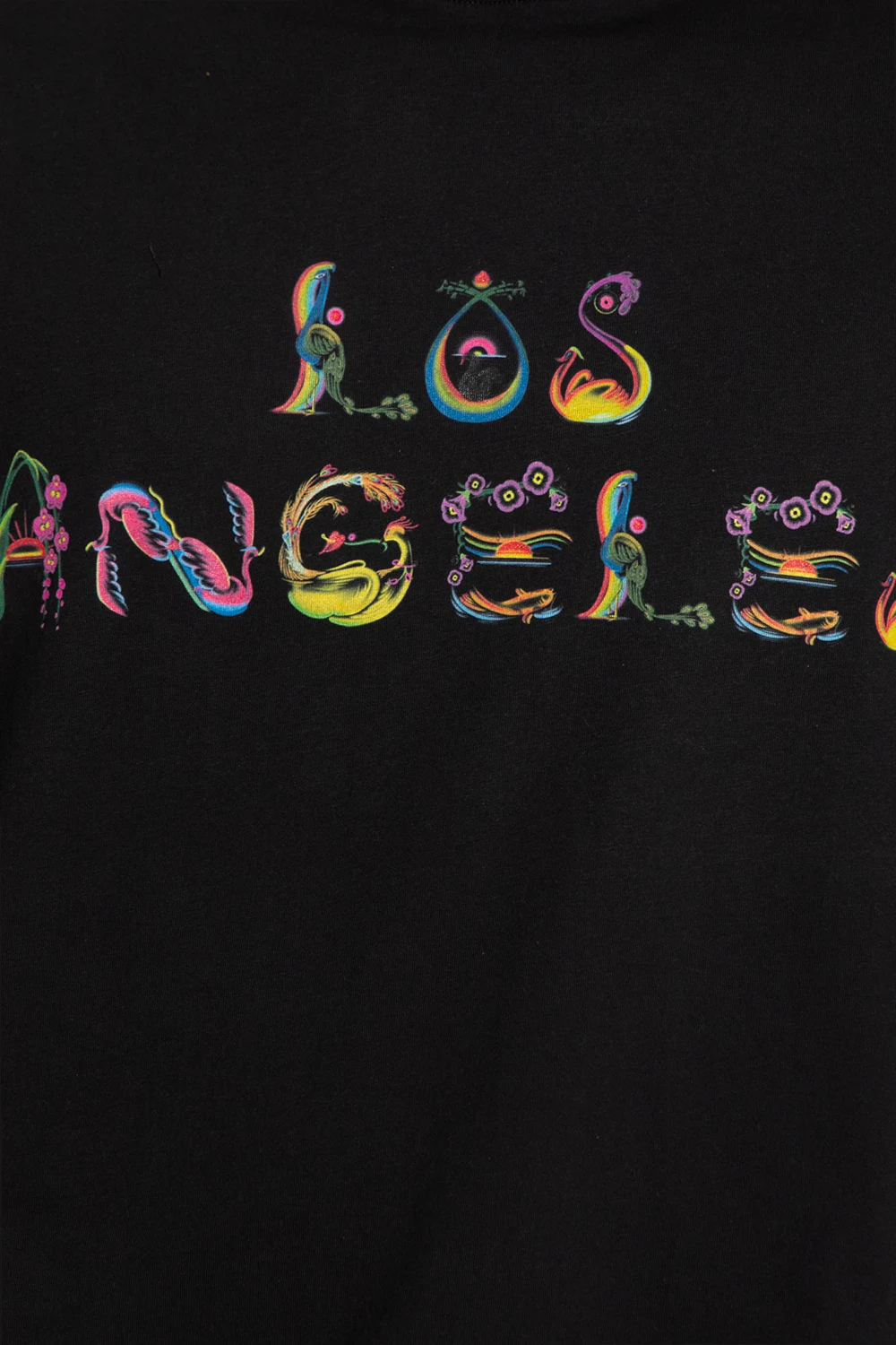 Czarny t-shirt Opening Ceremony. Wykonany z bawełny. Ozdobiony kolorowym, nadrukowanym logo. Okrągły dekolt wykończony ściągaczem. Krótkie rękawy.