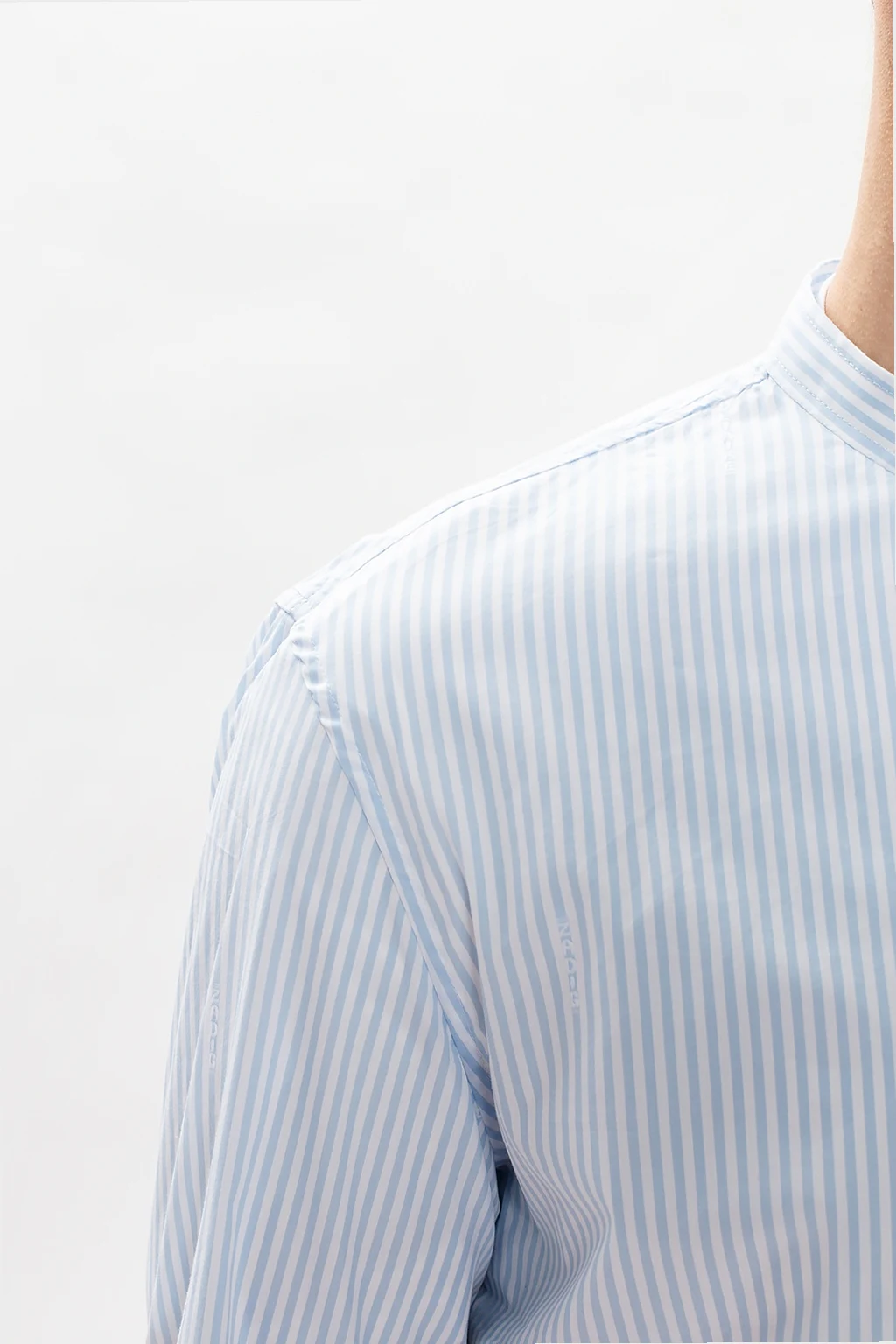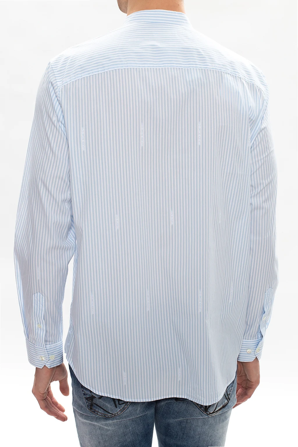 – Kopertowa koszula w prążki z rękawami typu kokon