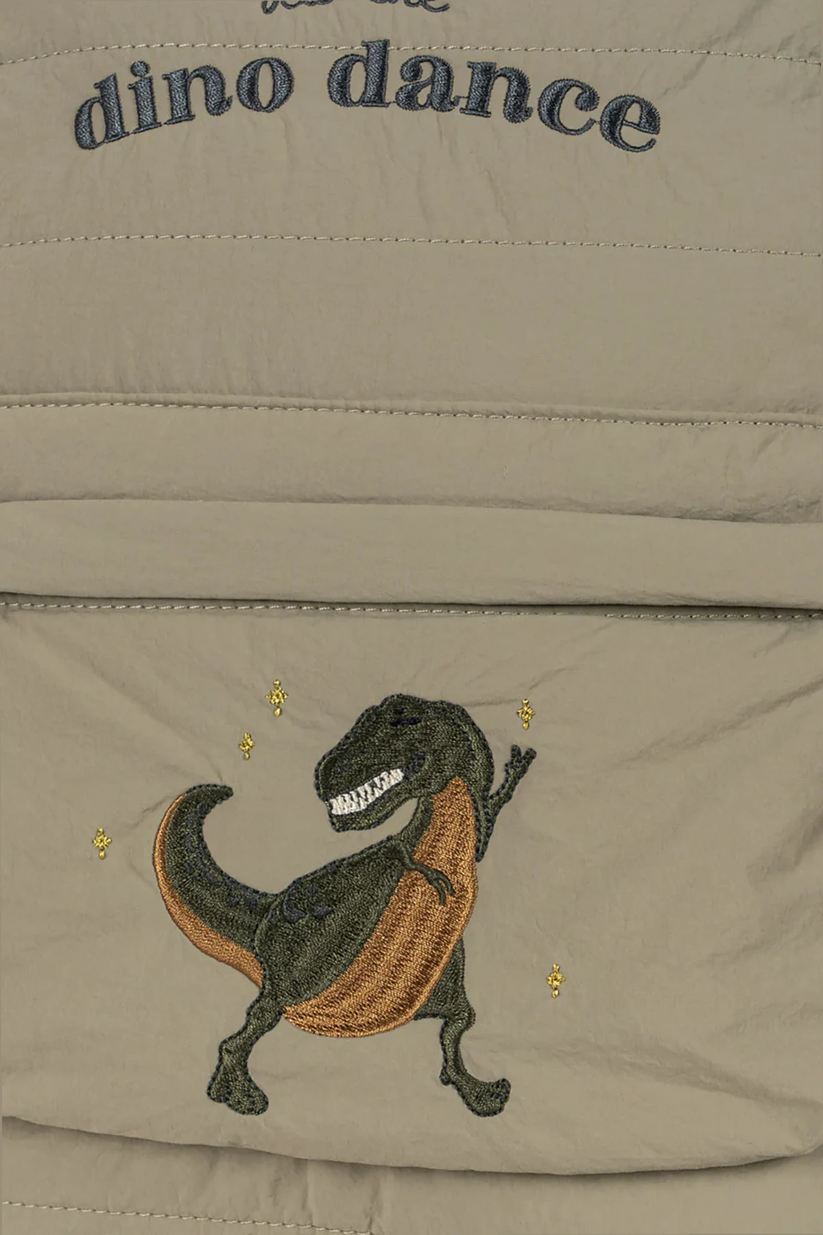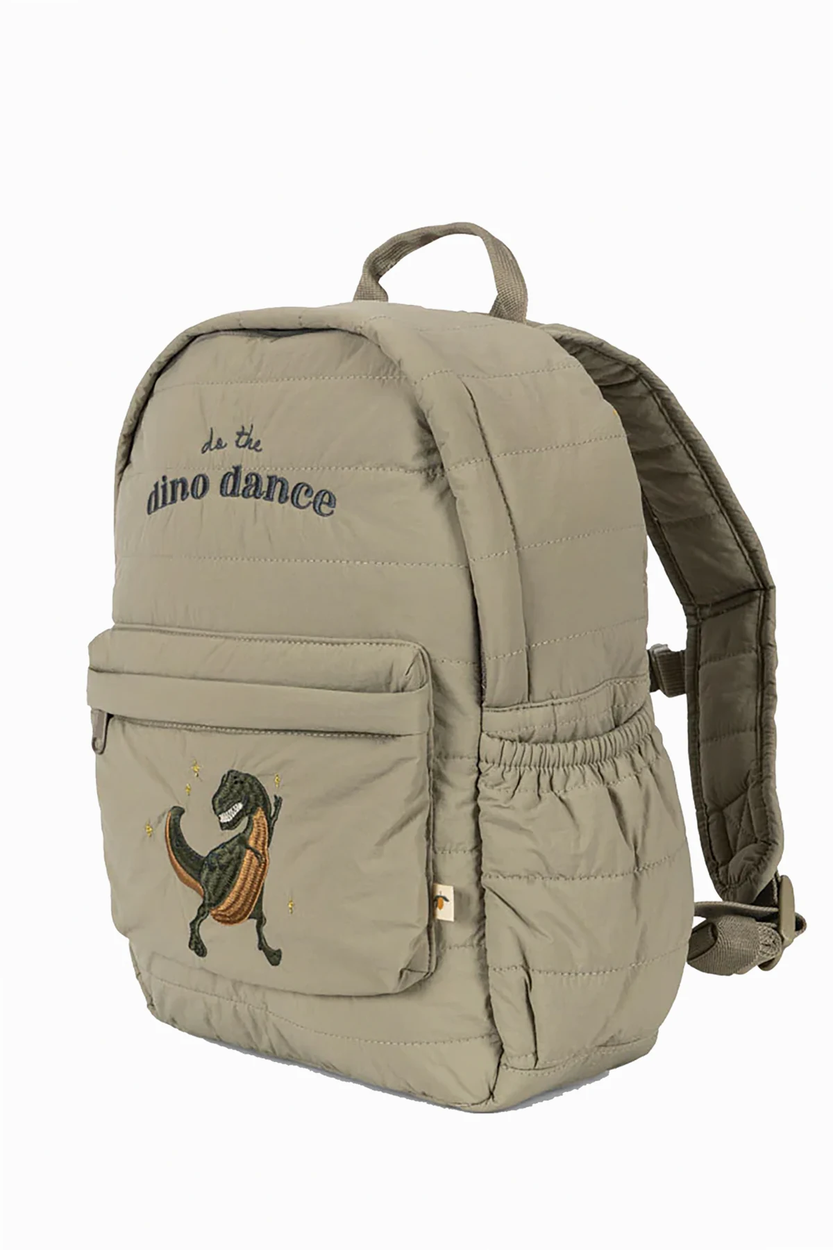 Na przedniej kieszeni ujmuje haftowany wzór tańczącego dinozaura oraz napis „do the dino dance”, co dodaje mu niepowtarzalnego uroku. Posiada jedną dużą komorę główną oraz praktyczną kieszeń na zamek, a także elastyczne boczne kieszenie.