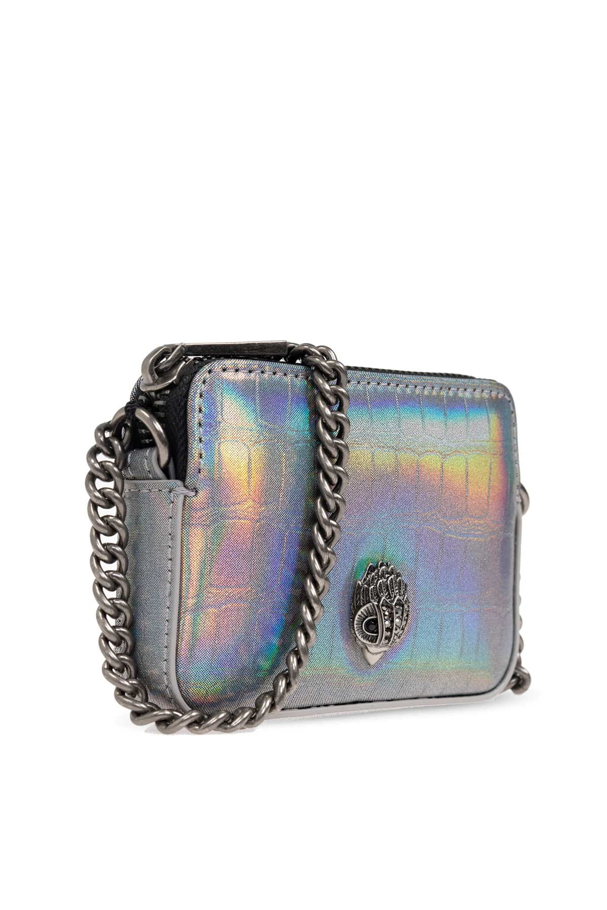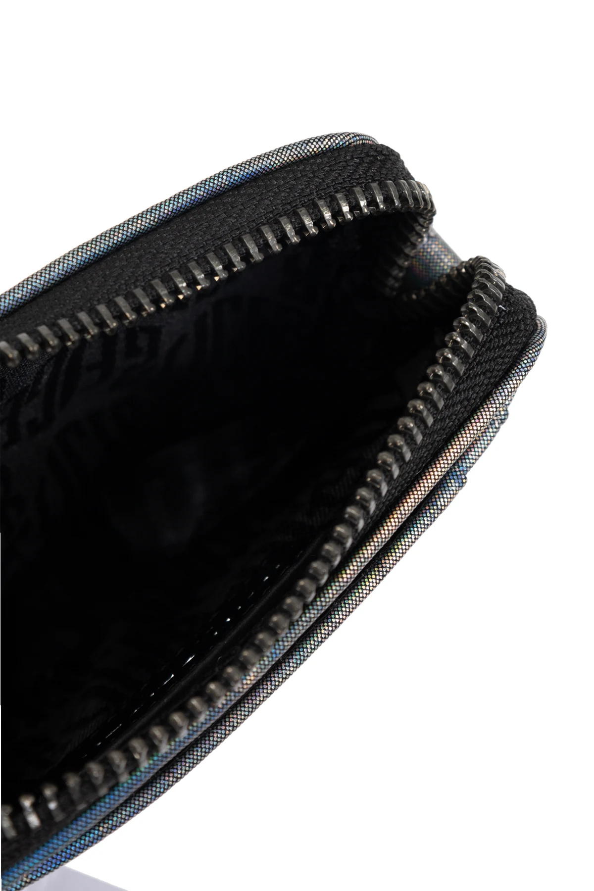 Portfel na łańcuchu od renomowanej brytyjskiej marki Kurt Geiger to kwintesencja luksusu i nowoczesnego designu. Utrzymany w multikolorze z dominującym efektem holograficznego połysku, portfel przyciąga wzrok swoją wyjątkową, zmieniającą barwy powierzchnią. Prostokątny kształt z zaokrąglonymi narożnikami oraz faktura naśladująca skórę krokodyla nadają mu niepowtarzalnej elegancji.