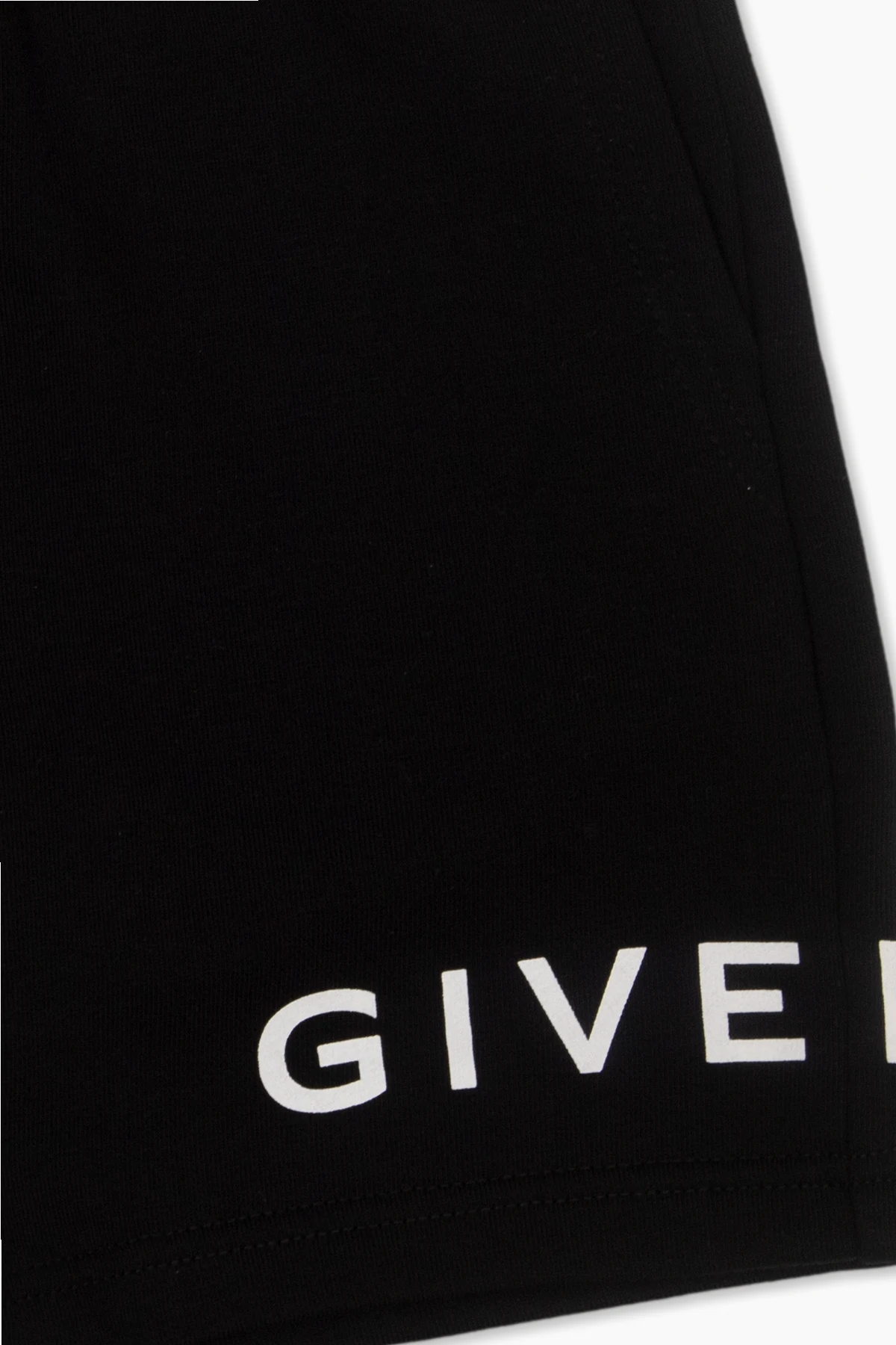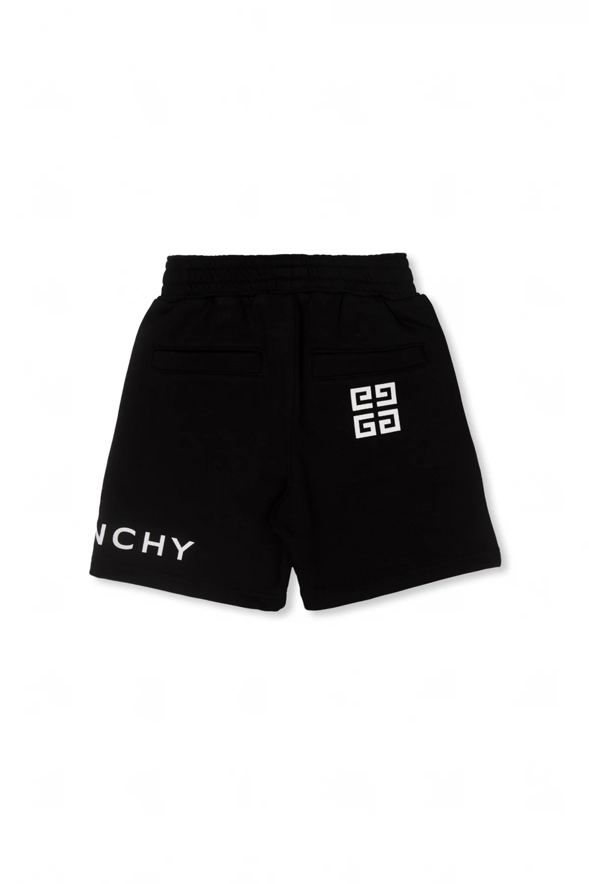 Czarne szorty dresowe Givenchy Kids. Wykonana z bawełny. W pasie wszyta guma ściągana trokami. Ozdobione nadrukiem z logo. Cztery kieszenie wsuwane.