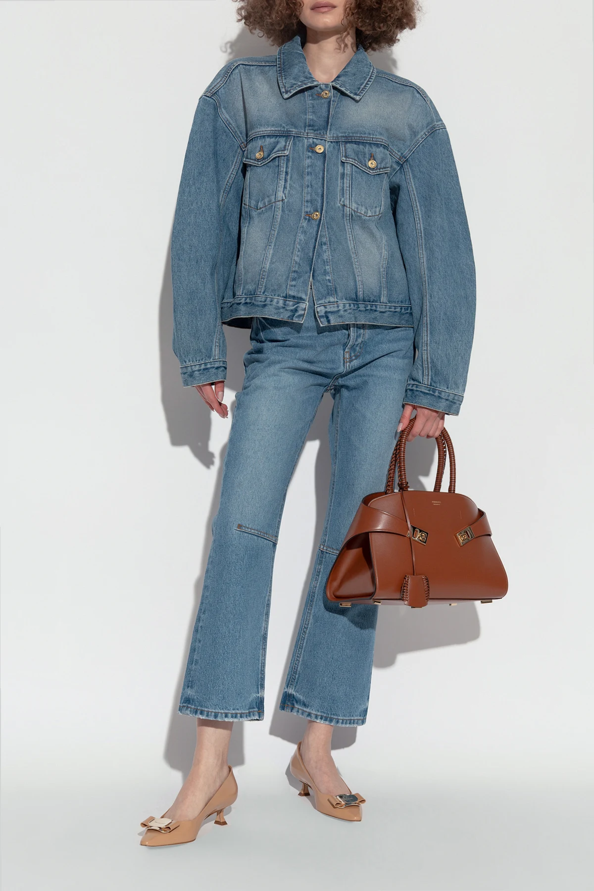 Jednolity beżowy kolor nadaje im ponadczasowy wygląd, a ozdobna kokarda z metalowym elementem w kolorze złotym na przodzie buta dodaje subtelnego uroku. Napis „Ferragamo” na metalowym elemencie oraz wewnątrz buta podkreśla ekskluzywność i prestiż tego projektu.