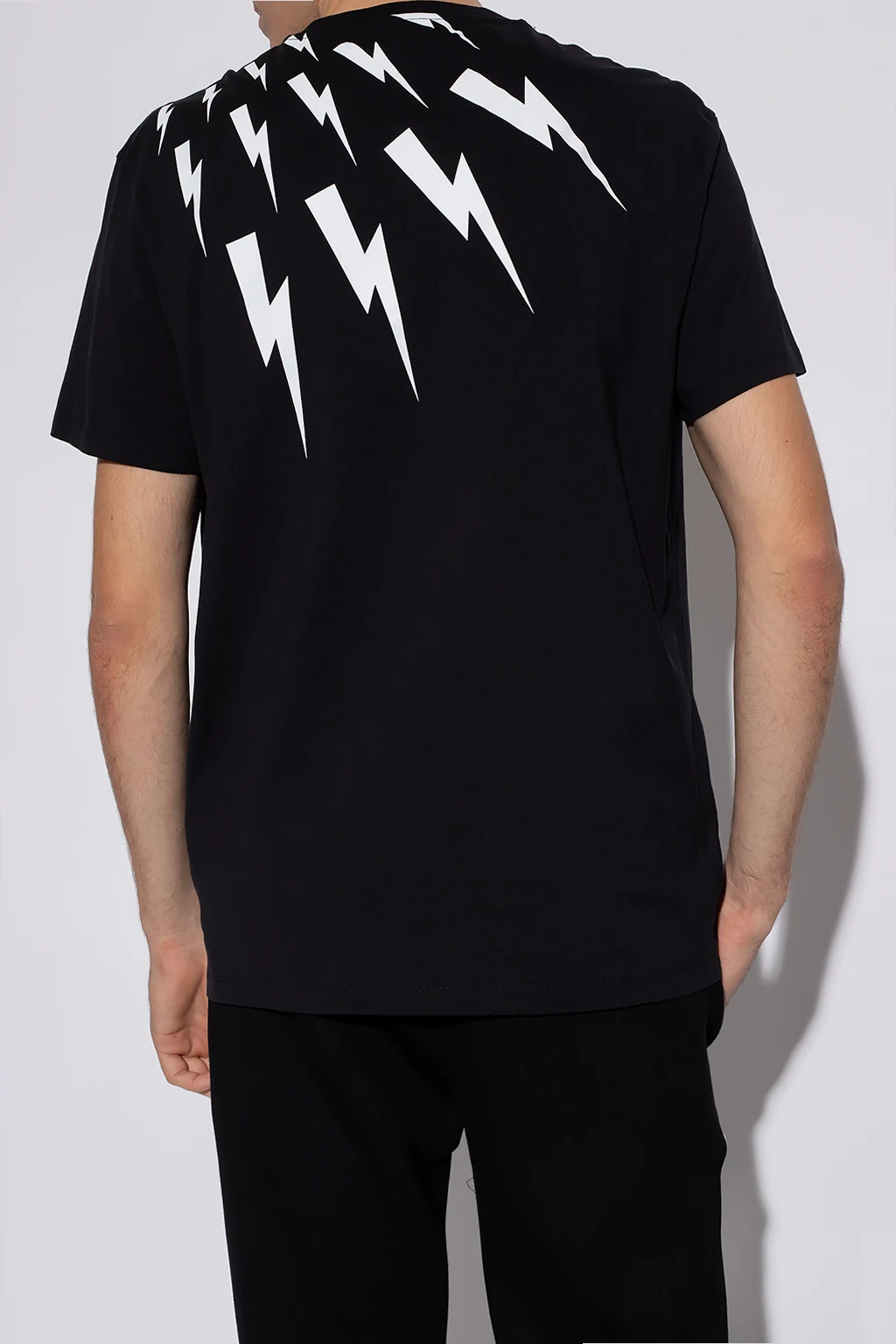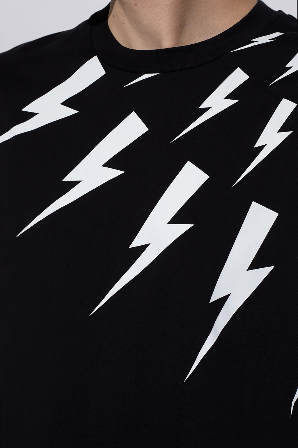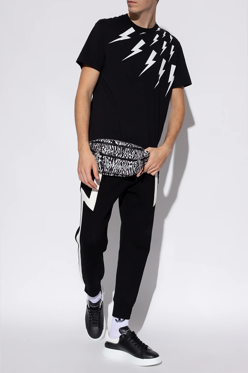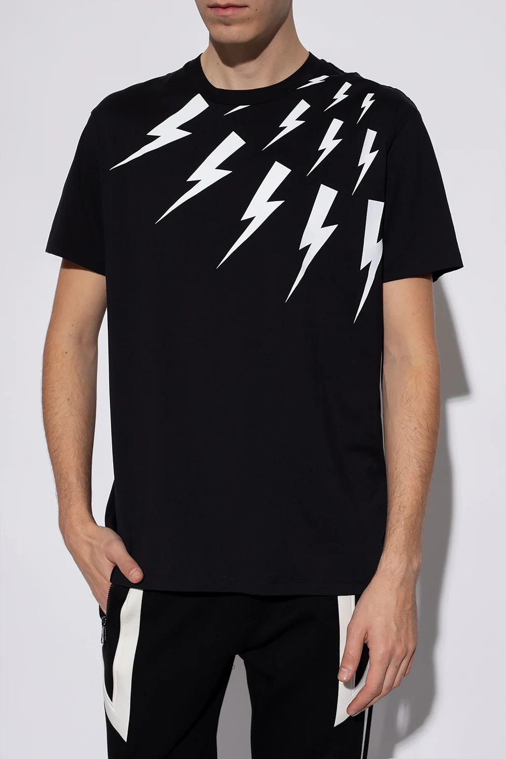 Czarny, bawełniany t-shirt Neil Barrett. Nadrukowane logo w kolorze białym. Okrągły dekolt wykończony ściągaczem. Krótkie rękawy.