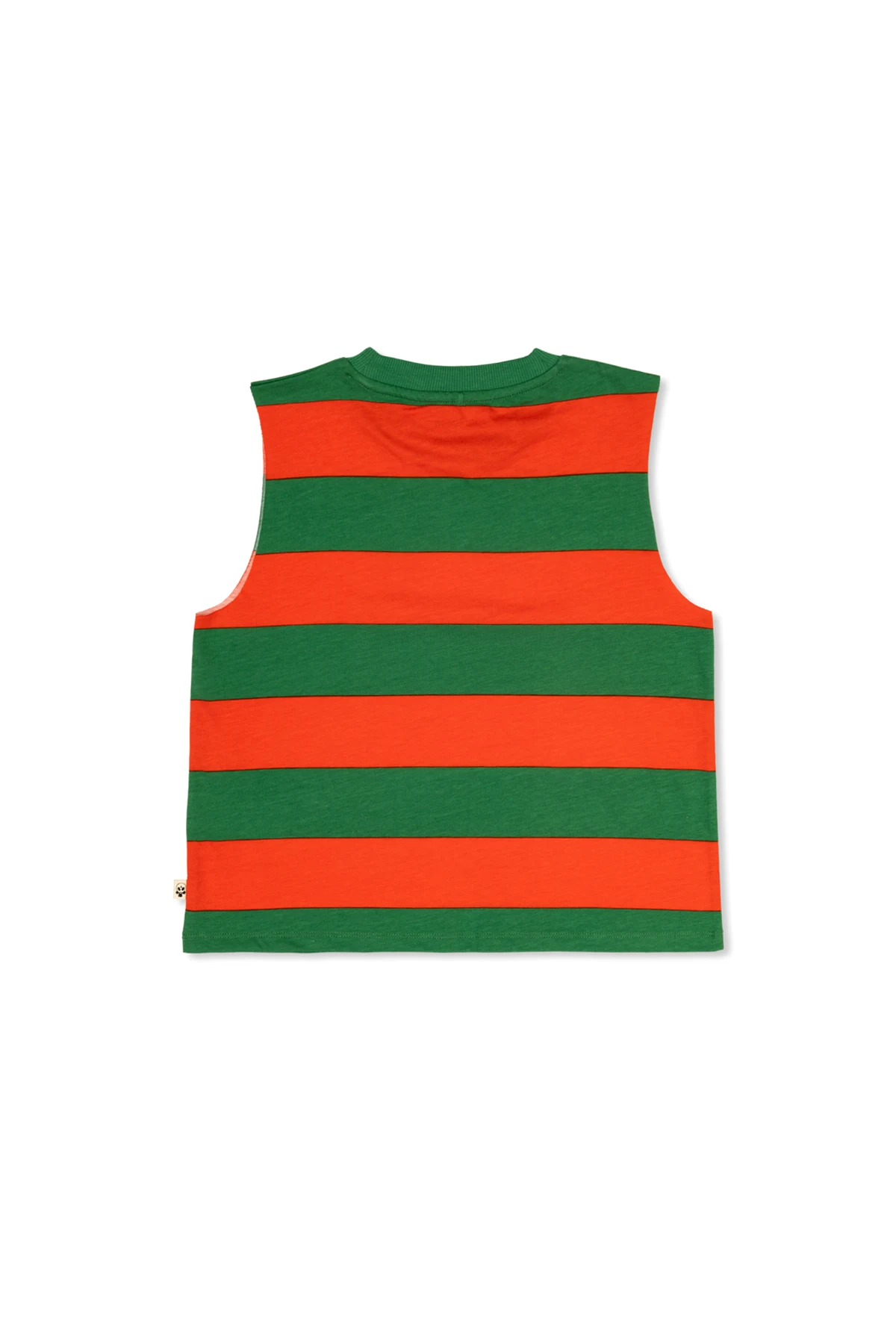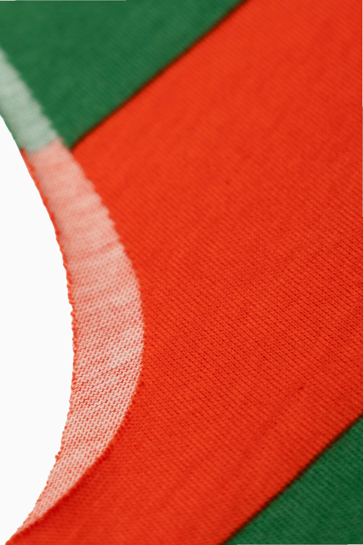 Prezentujemy T-shirt ze wzorem w paski od renomowanego projektanta Mini Rodini , będący kwintesencją dziecięcej elegancji połączonej z codziennym komfortem. Ubranie, zaprojektowane z myślą o młodych odkrywcach, charakteryzuje się wyrazistymi, poziomymi paskami w optymistycznych kolorach zielonym i czerwonym, które niewątpliwie wzbogacą każdą dziecięcą garderobę.
