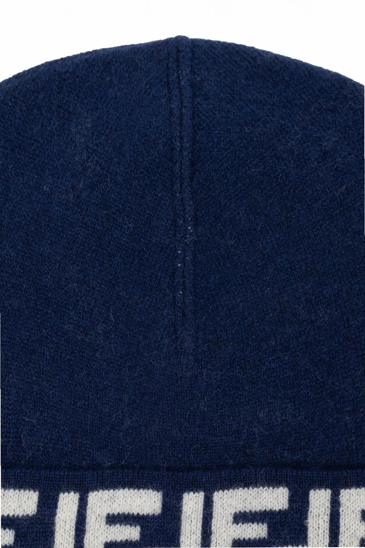 Prezentujemy Państwu wełnianą czapkę od renomowanej marki Fendi Kids , która jest kwintesencją elegancji połączonej z funkcjonalnością. Wykonana z najwyższej jakości materiałów, w tym wełny i kaszmiru z domieszką poliamidu, gwarantuje nie tylko niebywałą miękkość, ale również trwałość i odporność na przemijające trendy. Dominujący odcień granatowy , wzbogacony o kontrastujące białe logo projektanta na szerokim ściągaczu, dodaje czapce typu beanie niepowtarzalnego charakteru.