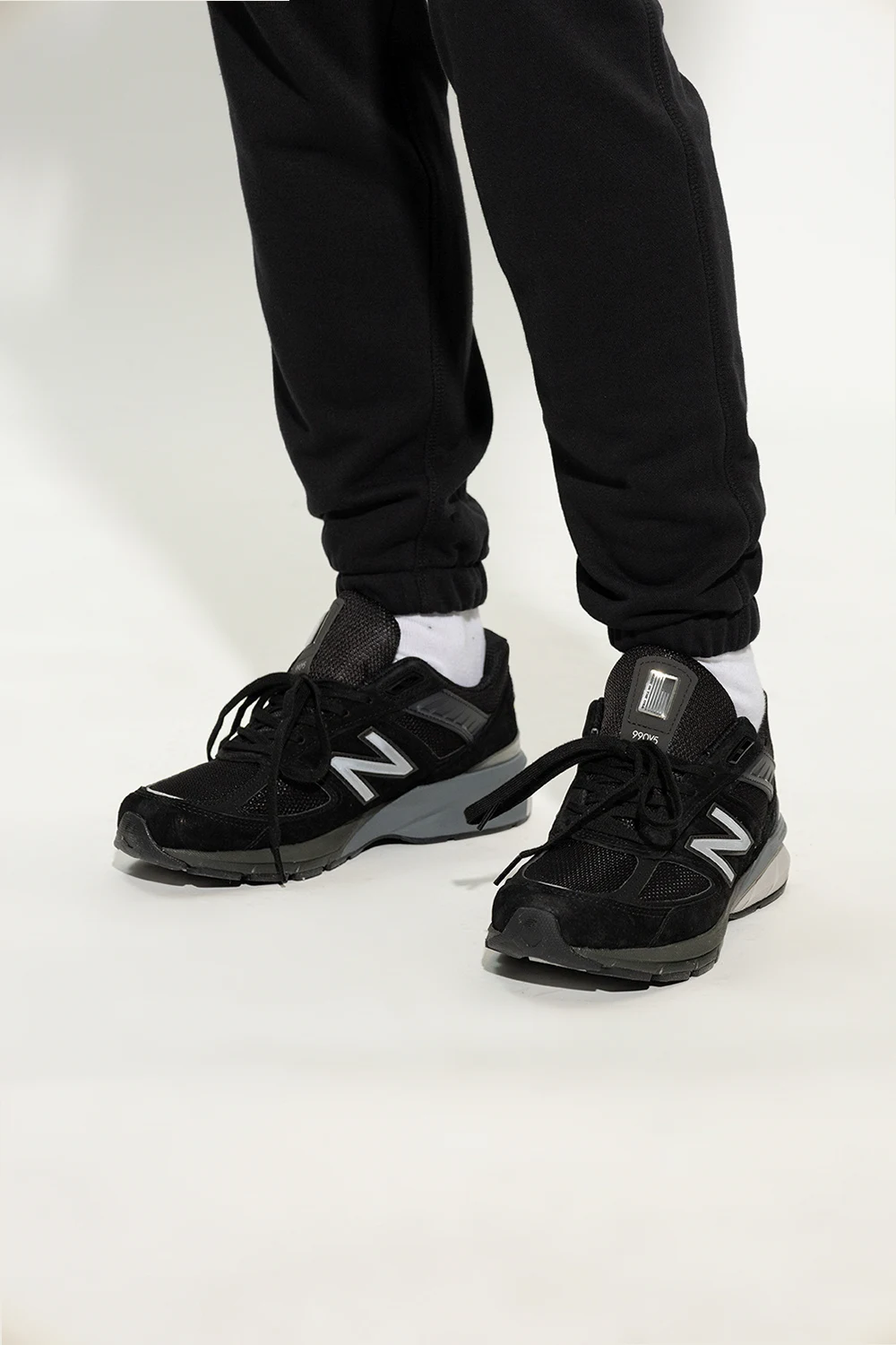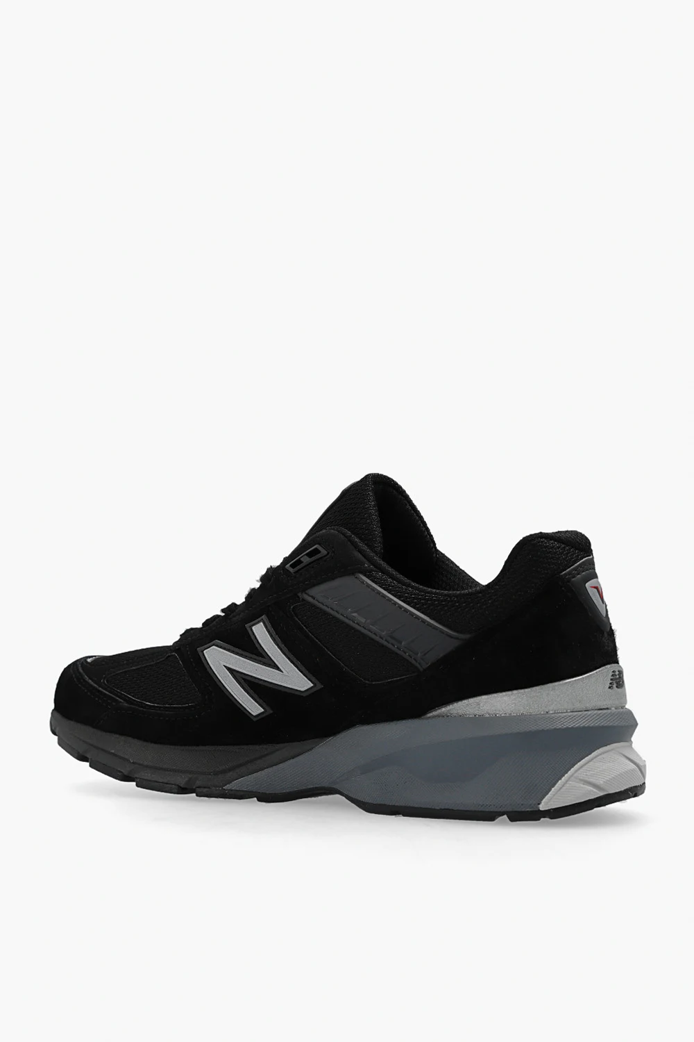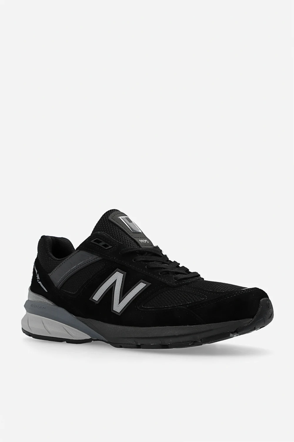 Czarno-szare, sznurowane buty sportowe, model ‘M990BK5’ New Balance. Wykonane ze skóry i materiału. Ozdobione aplikacją z logo oraz oznaczeniem modelu. Czarno-szara gumowa podeszwa.