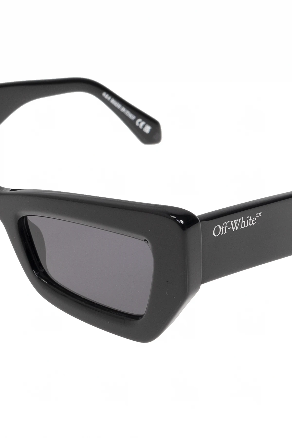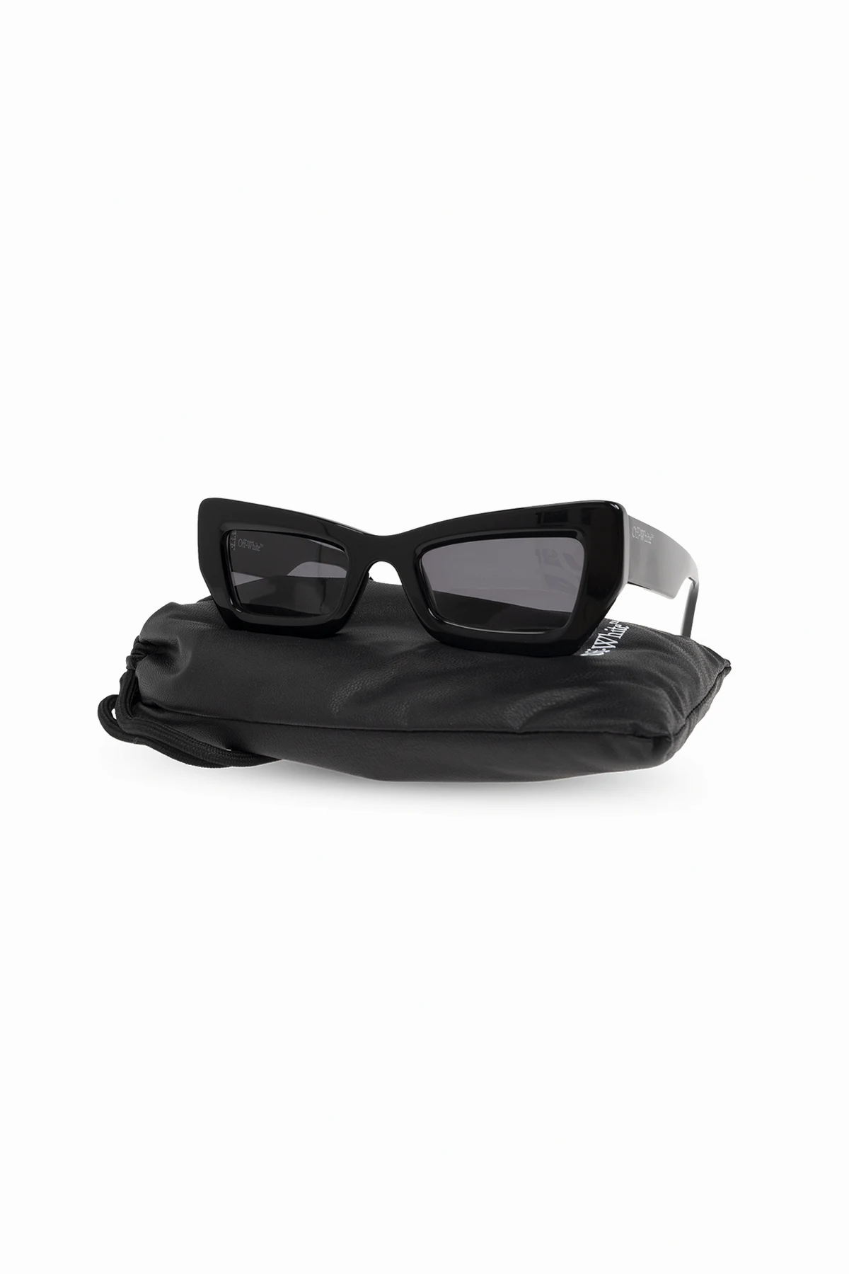 Przedstawiamy okulary przeciwsłoneczne "Aurora" od renomowanej marki Off-White™. Te eleganckie okulary wyróżniają się nowoczesnym, kanciastym kształtem oprawek wykonanych z najwyższej jakości czarnego acetatu, które nadają im wyrazisty i luksusowy wygląd.
