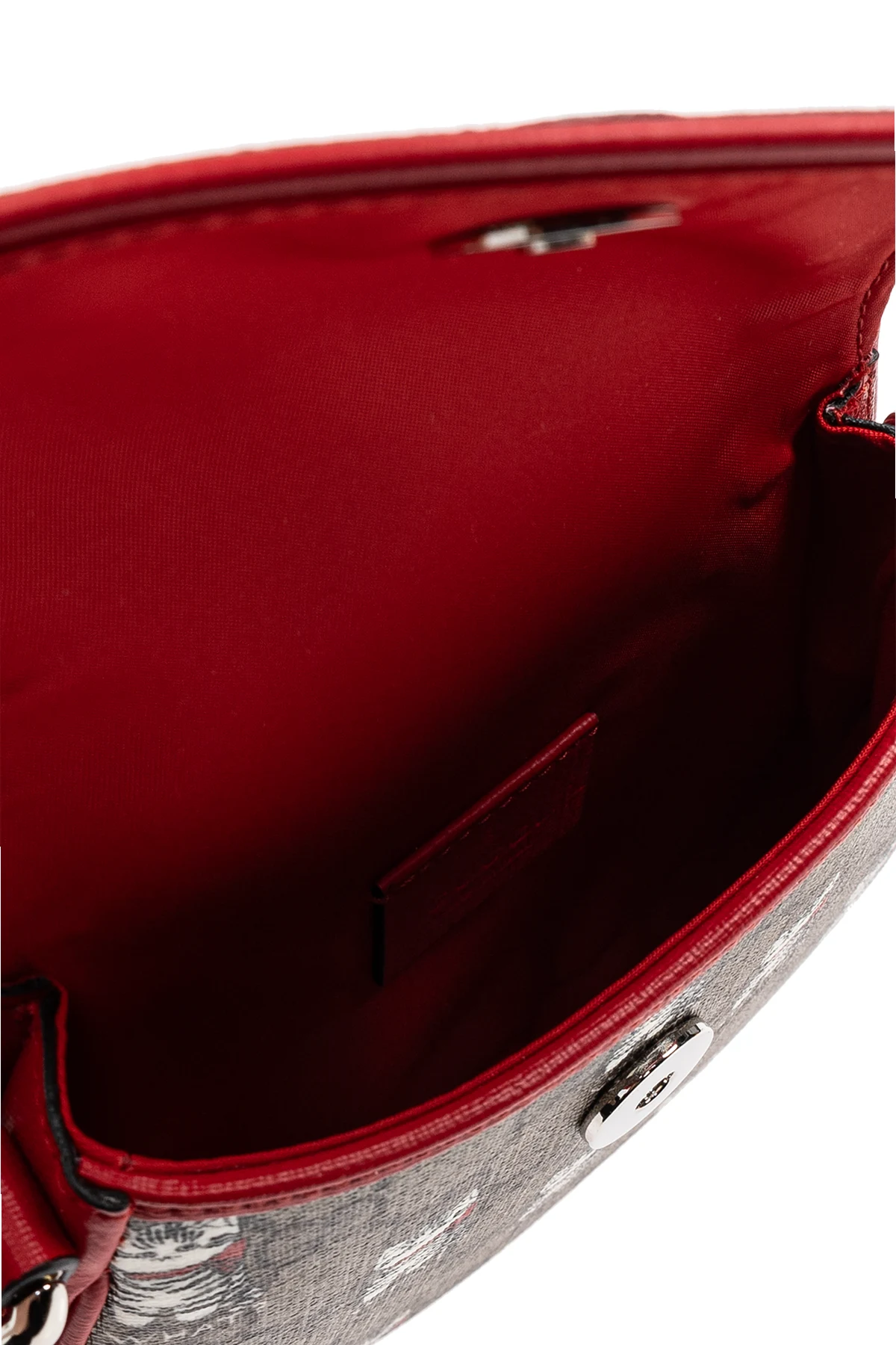Zaokrąglony kształt i regulowany pasek na ramię zapewniają komfort użytkowania, a przestronne wnętrze pozwala na wygodne przechowywanie niezbędnych przedmiotów. Czerwone, okrągłe logo marki na przodzie torby dodaje jej ekskluzywnego charakteru.