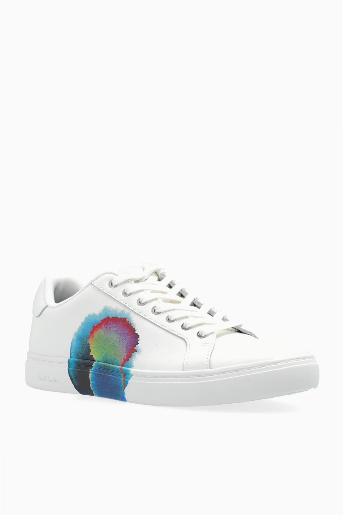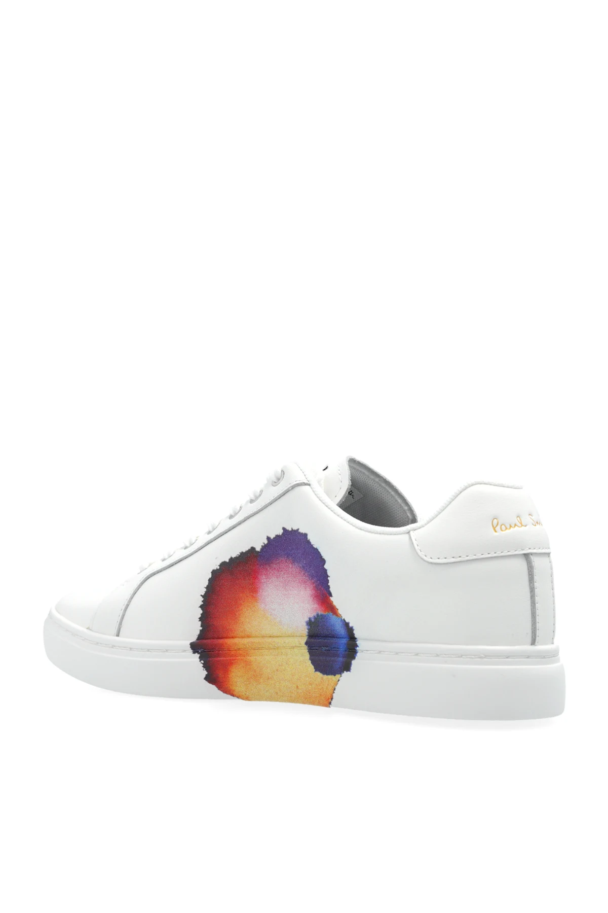Charakterystyczny, kolorowy nadruk na bocznych panelach butów, przypominający abstrakcyjny obraz w intensywnych barwach, nadaje im unikalny i artystyczny charakter. Subtelne logo "Paul Smith" w złotym kolorze na pięcie dodaje prestiżu.
