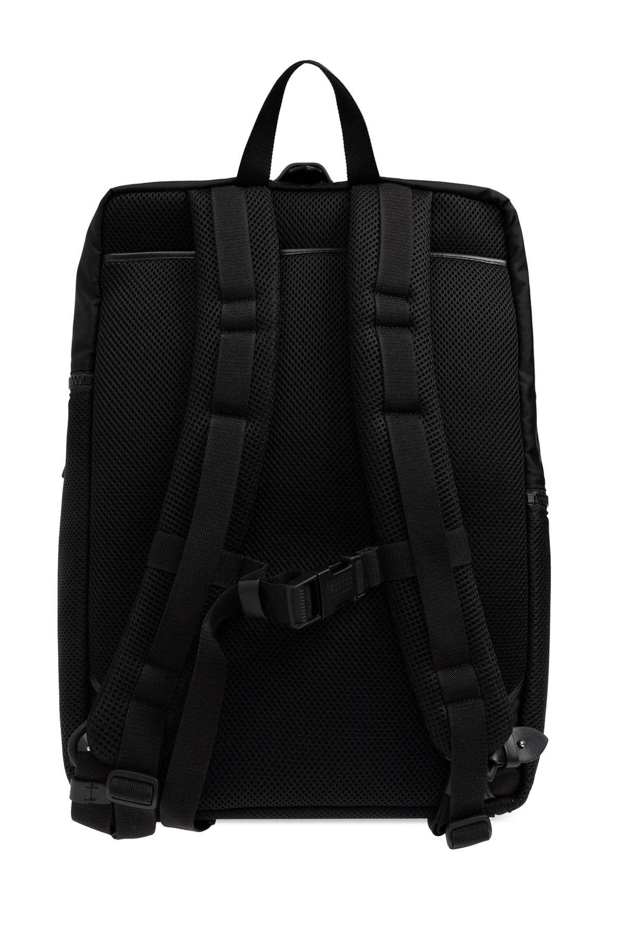 Wykonany z gładkiego, odpornego na wodę nylonu, plecak charakteryzuje się klasycznym, prostokątnym kształtem z lekko zaokrąglonymi narożnikami u góry. Jego jednolity, czarny kolor podkreśla elegancję i ponadczasowy styl.