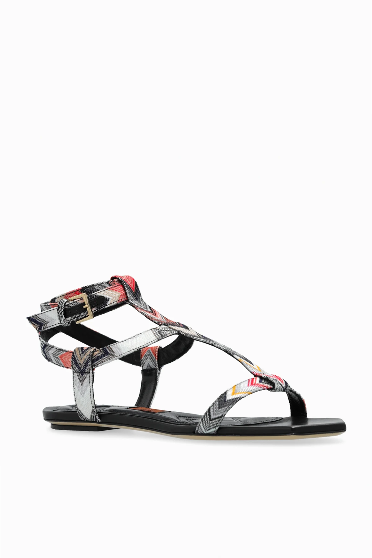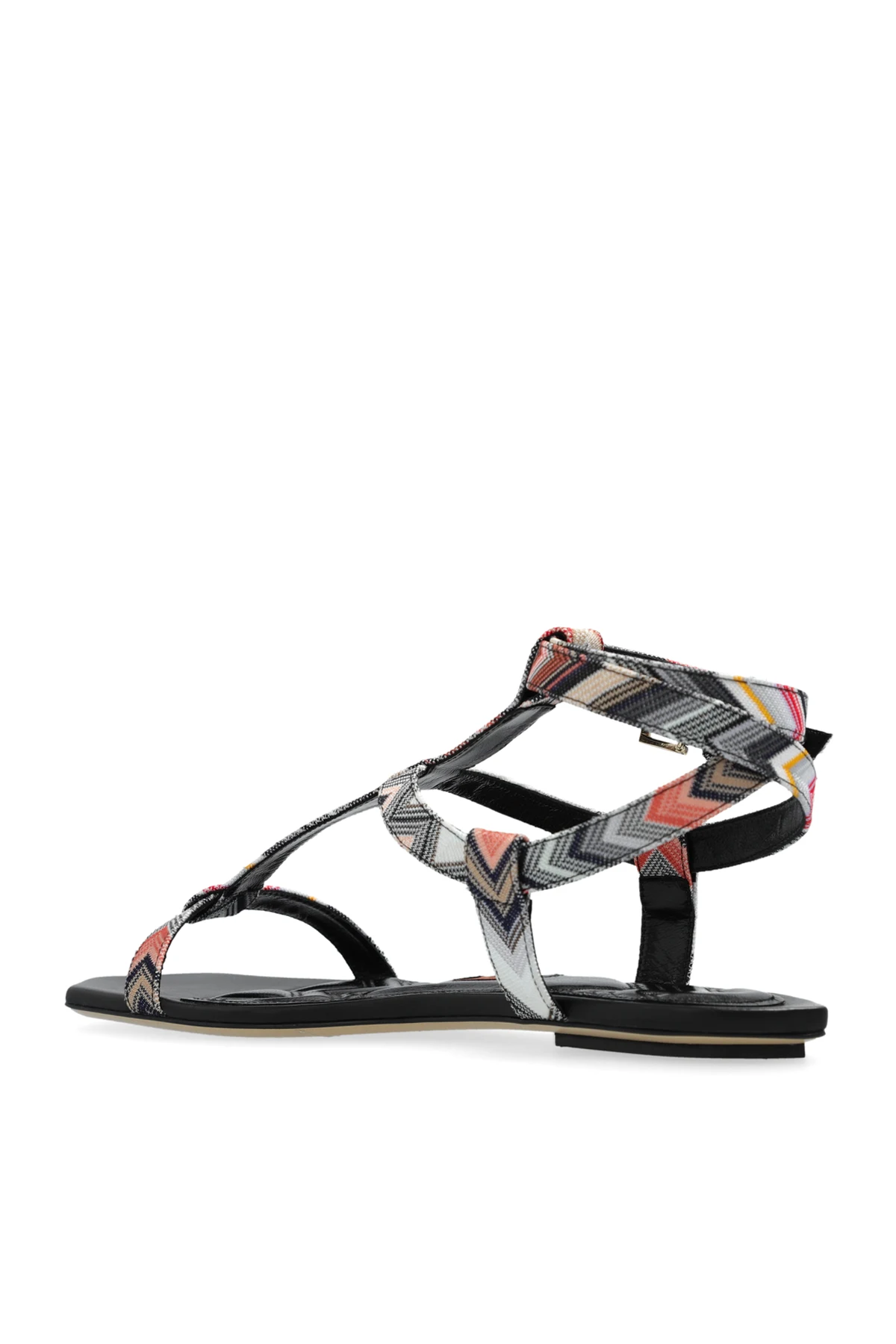 Oprócz wyrazistej estetyki, sandały te wyróżniają się praktycznością i komfortem . Płaska, skórzana podeszwa gwarantuje wygodę przez cały dzień, zaś regulowany pasek z metalową klamrą wokół kostki pozwala na idealne dopasowanie. Dodatkowy element ozdobny w kształcie litery "V" przy pasku kostkowym podkreśla ekskluzywność i dbałość o detale, charakterystyczną dla twórczości Missoni.