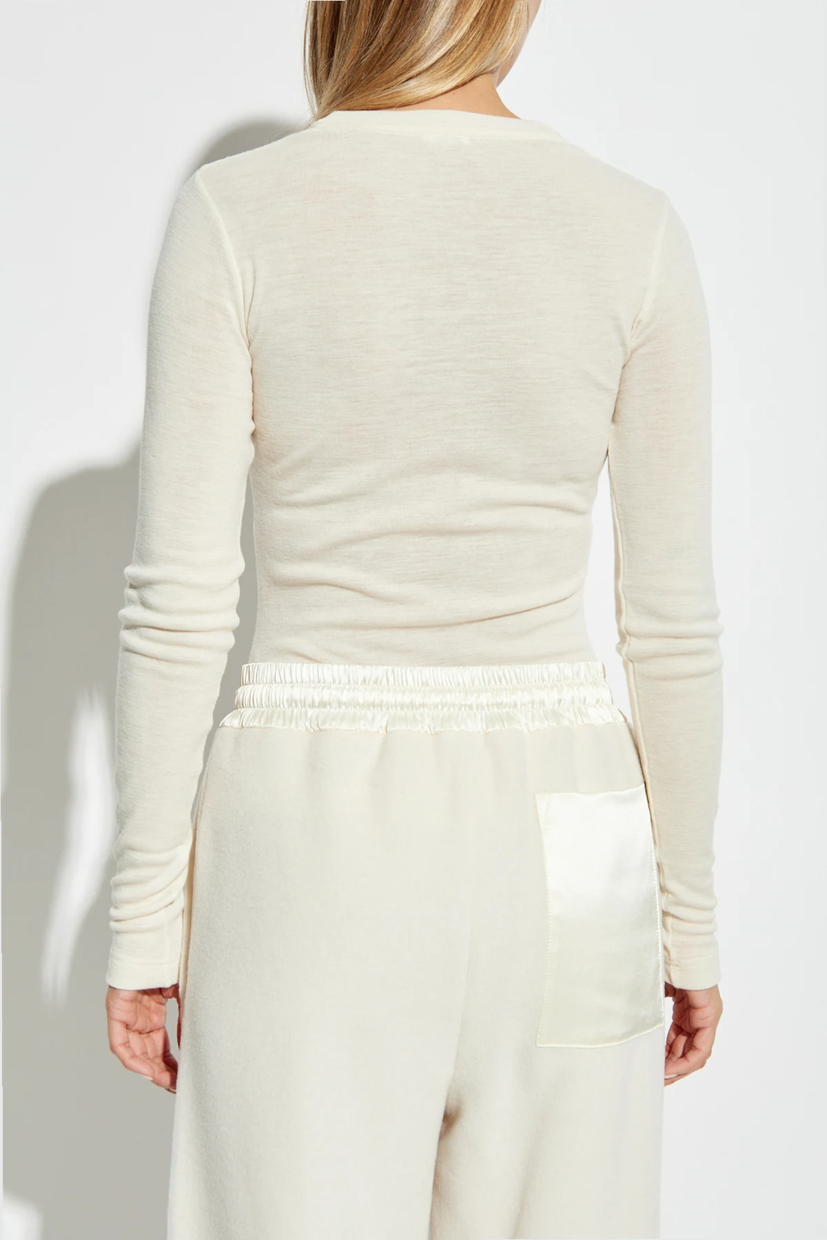 BIAŁY Prążkowany t-shirt z długimi rękawami