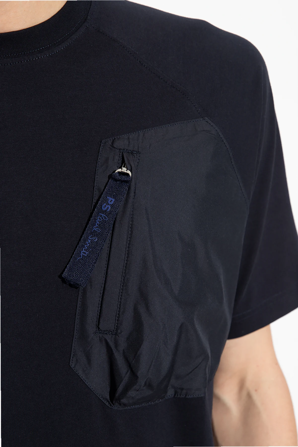 Czarny t-shirt PS Paul Smith. Wykonany z bawełny. Kieszeń z zamknięciem na zamek. Okrągły dekolt wykończony ściągaczem. Krótkie rękawy.