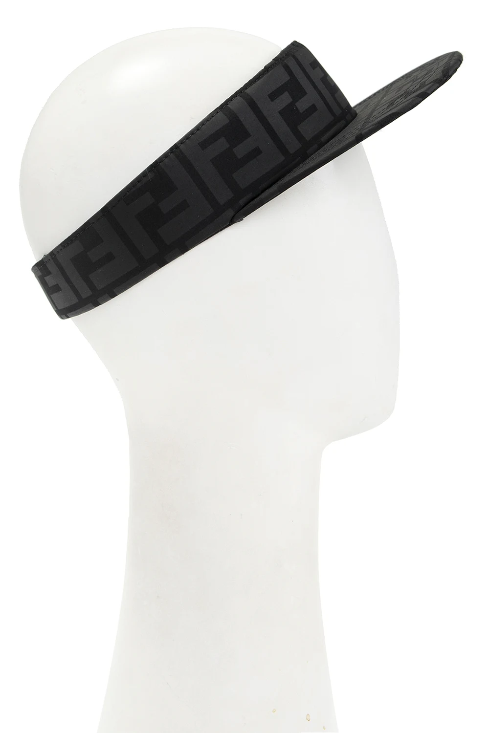 Czarny daszek Fendi Kids. Ozdobiony wzorem z logo. Z tyłu zapięcie na rzep.