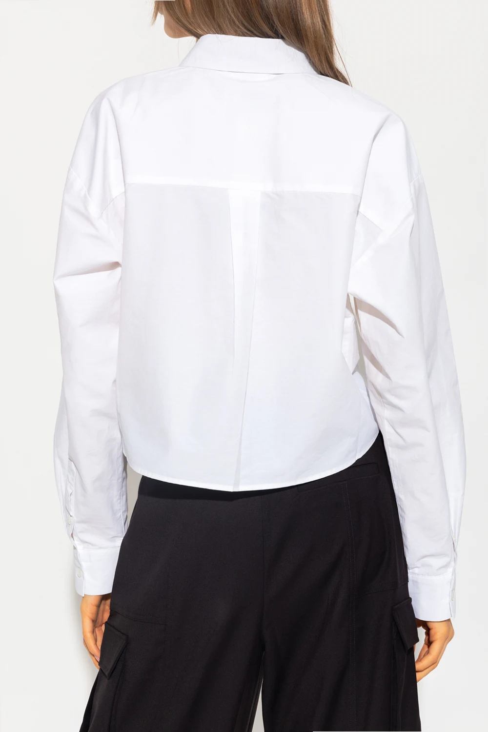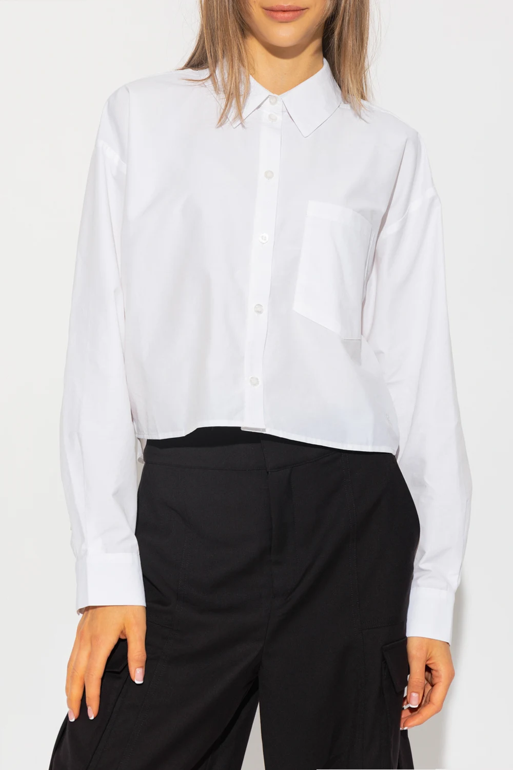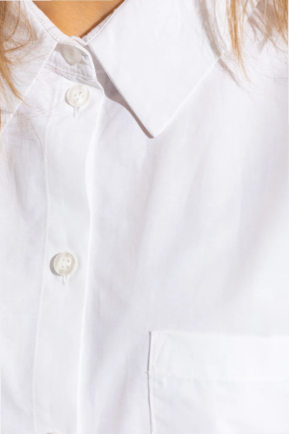 Krótka, biała, bawełniana koszula o luźnym kroju, model ‘BernafetteGZ’ Gestuz. Zapinana na guziki. Z przodu kieszeń i wyszyte logo. Długie rękawy, mankiety zapinane na guzik.