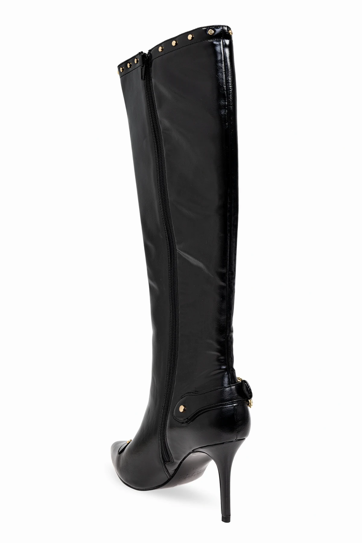 Wykonane z błyszczącej, czarnej skóry, która przyciąga wzrok i podkreśla luksusowy charakter obuwia.
