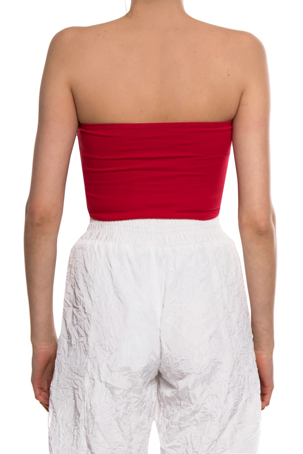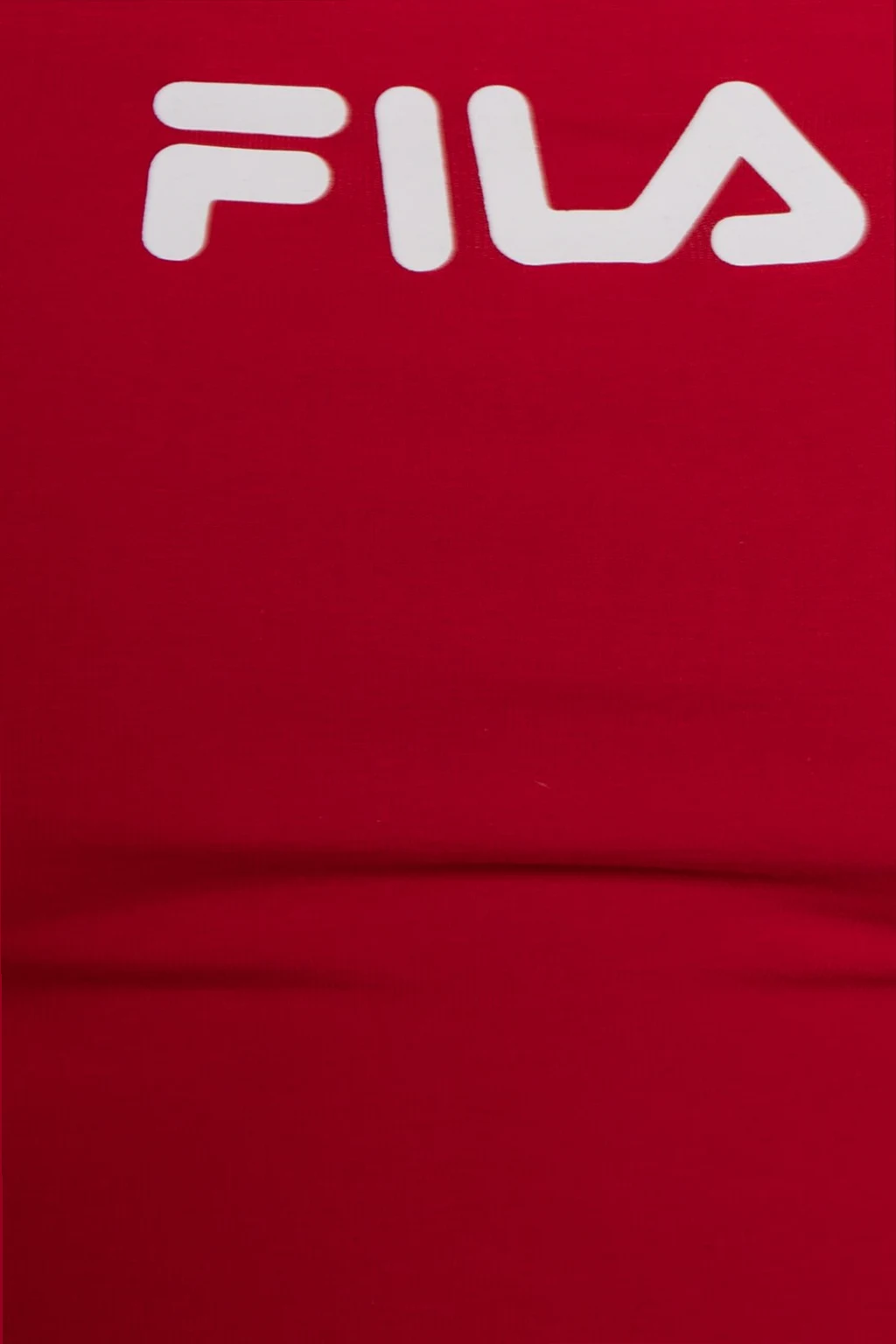 Czerwony, krótki top Fila. Wykonany z bawełny. Ozdobiony nadrukiem z logo w kolorze białym.