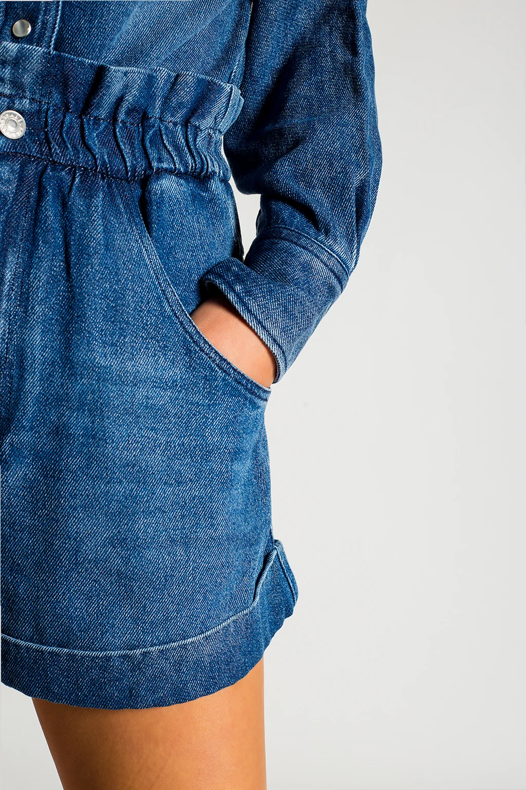 Ciemnoniebieskie szorty Isabel Marant Étoile. Wykonane z lyocellu imitującego jeans. W pasie wszyta guma. Zapinane na zamek oraz guziki. Cztery wsuwane kieszeni: dwie z przodu i dwie z tyłu. Wysoki stan.