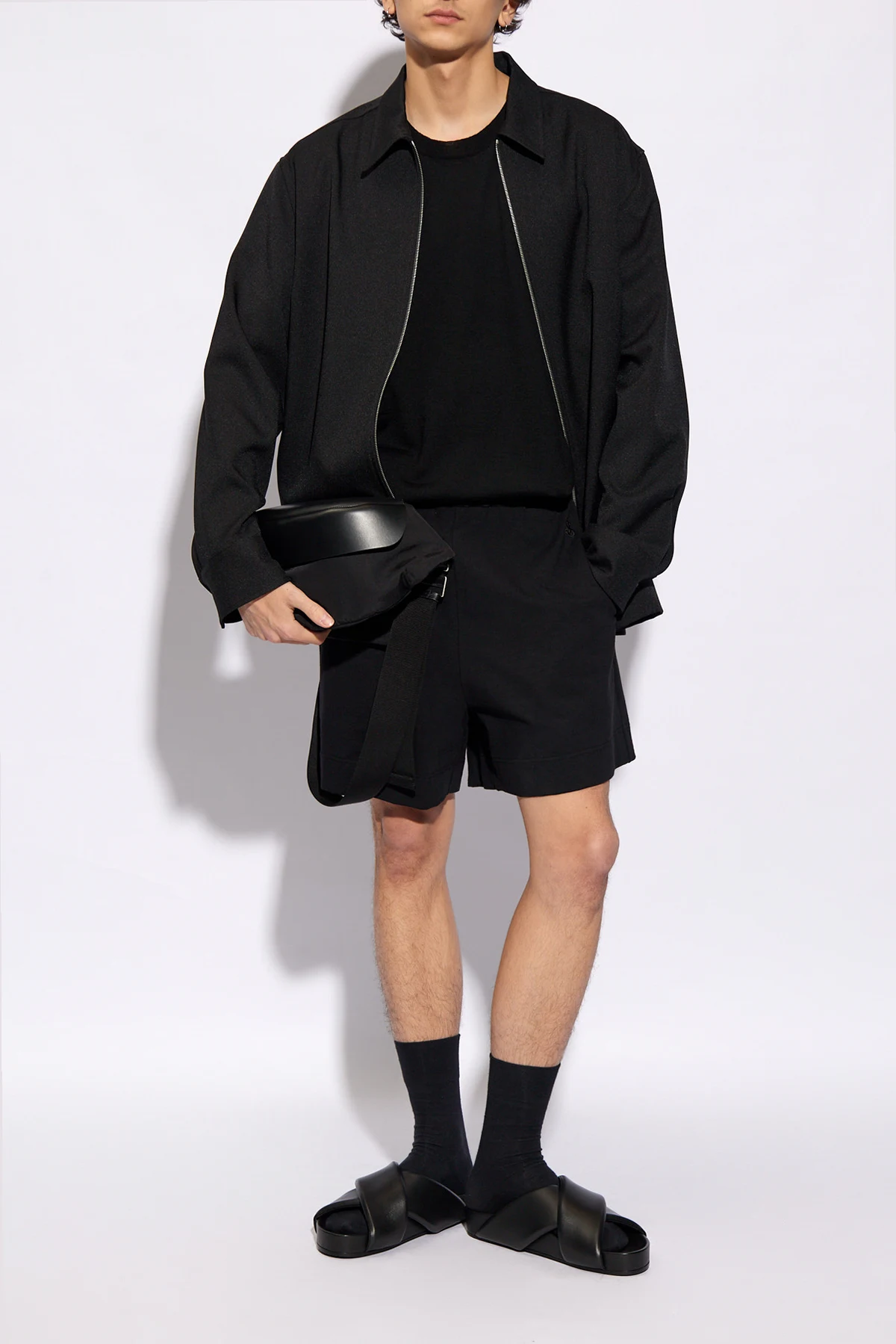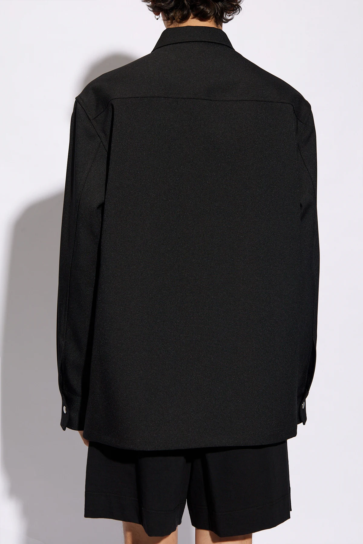 Czarna koszula JIL SANDER. Wykonana z materiału z recyklingu. Zapinana na dwubiegunowy zamek. Długie rękawy zakończone mankietem z zapięciem na zatrzask.