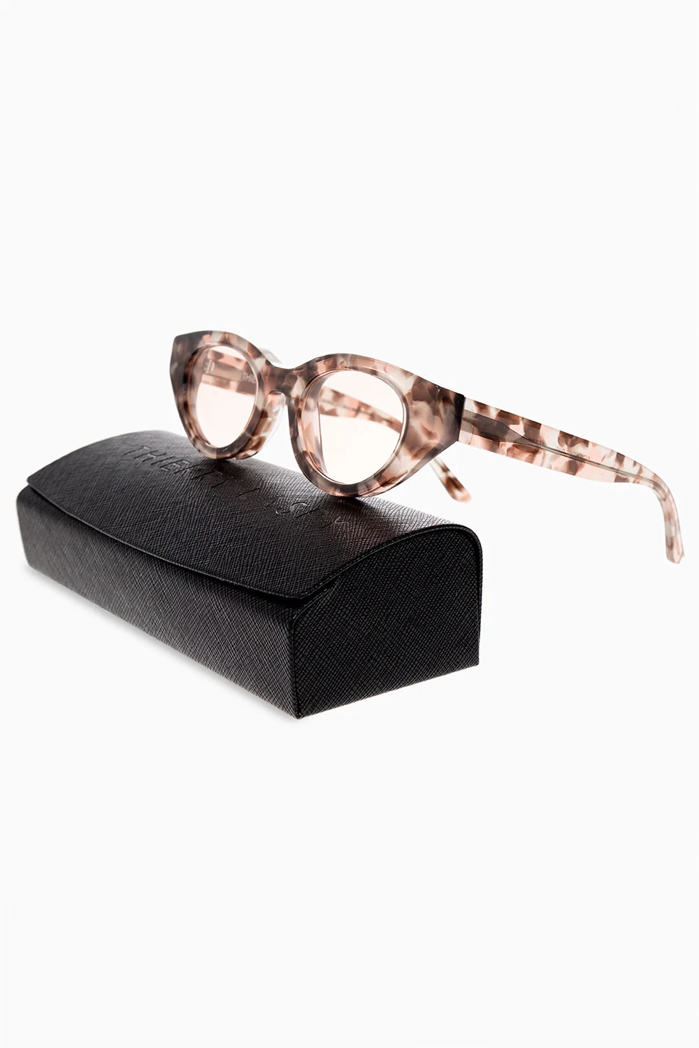 Lekko transparentne, brązowo-kremowe okulary przeciwsłoneczne, model ‘Acidity’ Thierry Lasry x Reede Cooper®. Oprawki w kształcie kocich oczu. Jasnoróżowe soczewki ze 100% ochroną przed promieniowaniem UV. Ręcznie wykonane we Francji. Dołączone etui.