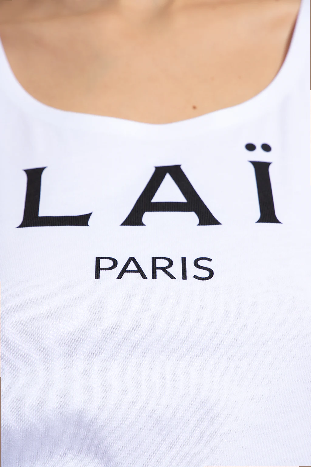 Białe body na ramiączka Alaia. Wykonane z bawełny. Na dole zapinane na zatrzaski. Z przodu ozdobione czarnym, nadrukowanym logo.