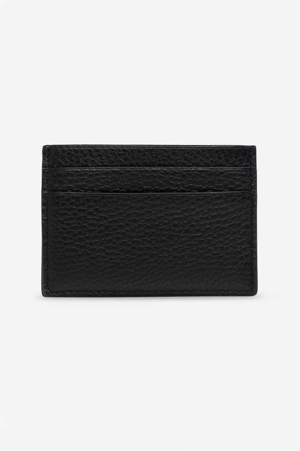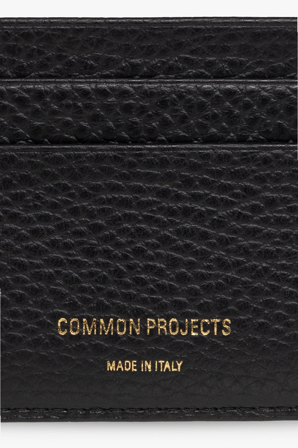 Czarne etui na karty Common Projects. Wykonane ze skóry o ziarnistej fakturze. Ozdobione nadrukowanym logo w kolorze złotym. Cztery miejsca na karty i wsuwana kieszeń.