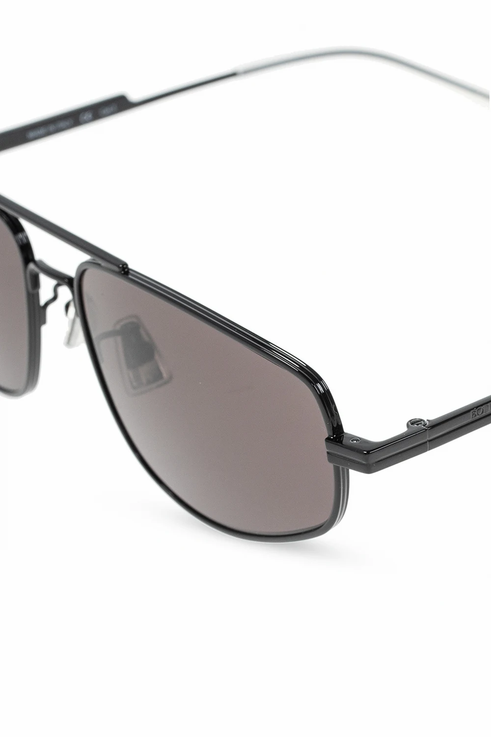 Czarne okulary przeciwsłoneczne Bottega Veneta. Zauszniki ozdobione wygrawerowanym logo. Szare, certyfikowane soczewki UVA/UVB.