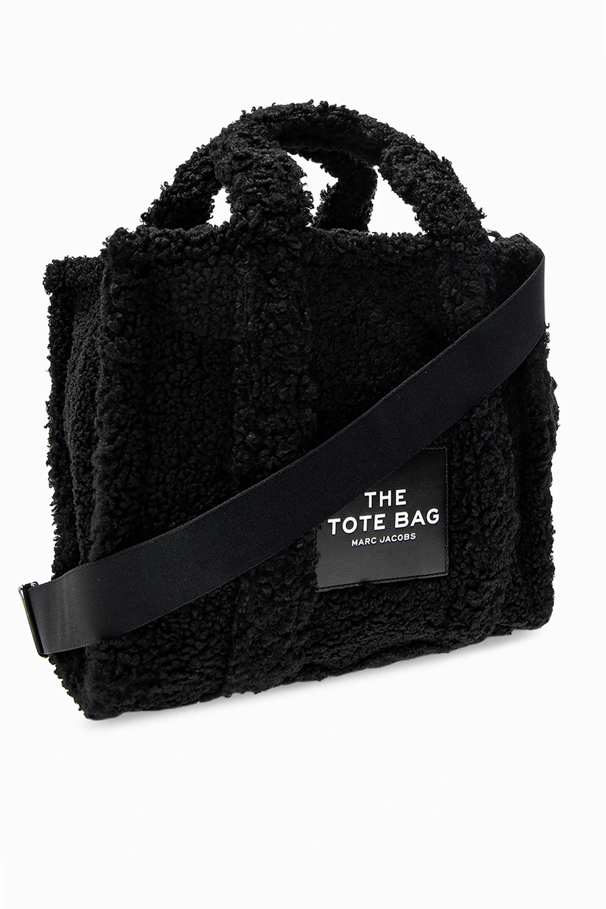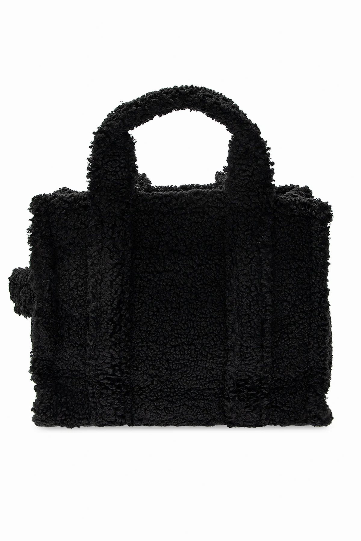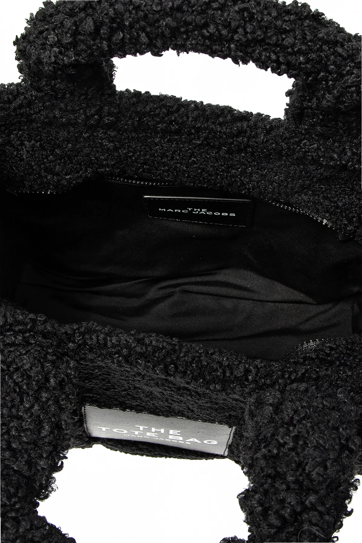 Czarna, futrzana torba na ramię, model 'The Medium Tote' Marc Jacobs. Zamykana na zamek. Ozdobiona naszywką z logo w kolorze czarno-białym. Trzy półokrągłe rączki. Dołączony pas na ramię z możliwością regulowania długości. Wewnątrz komora oraz kieszeń zamykana na zamek. Wykończenie w kolorze czarnym.