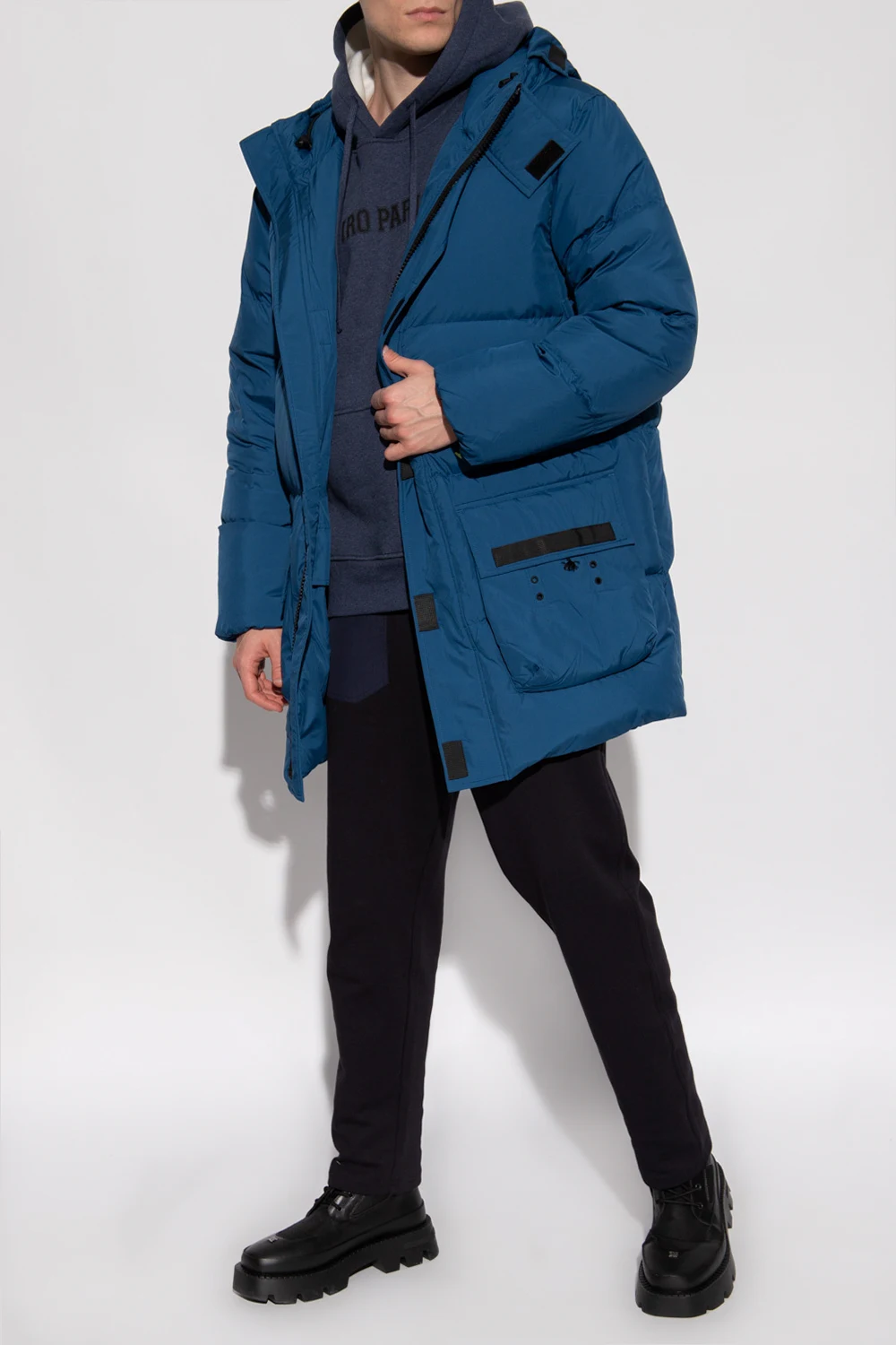 Wymiary modela: Wzrost: 193cm Klatka piersiowa: 95cm Talia: 82cm Biodra: 93cm Model ma na sobie rozmiar: L