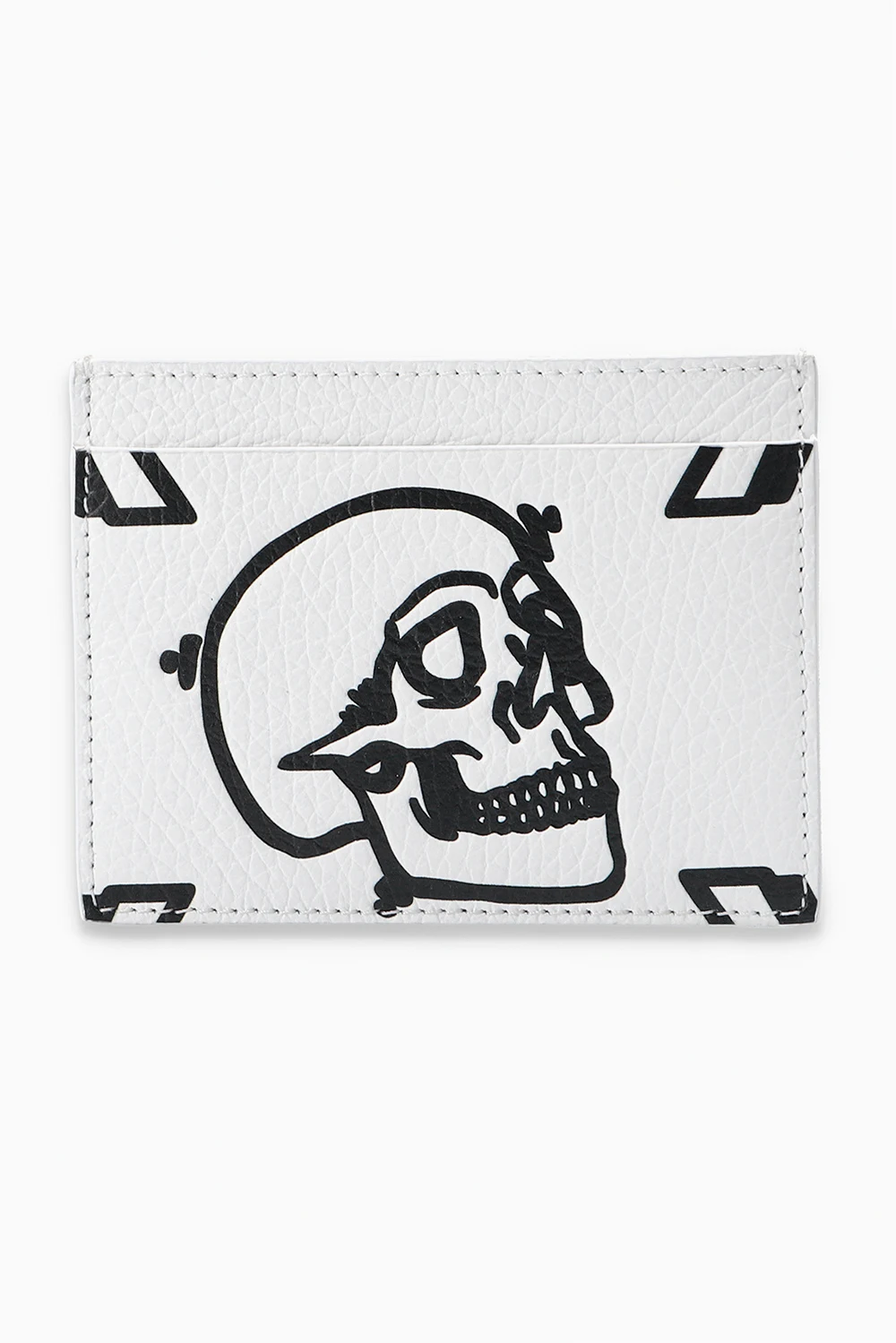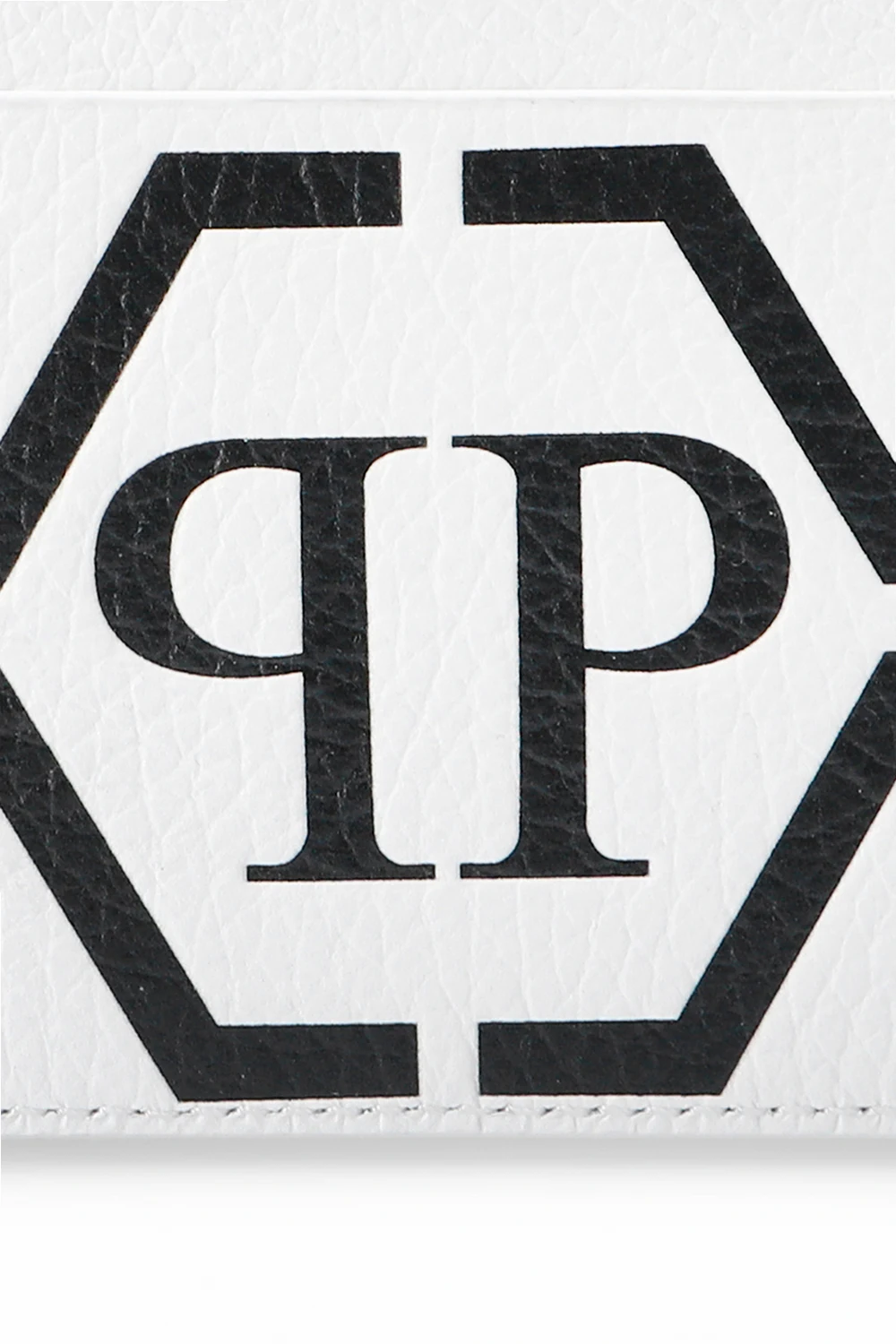 Białe etui na karty Philipp Plein. Wykonane ze skóry o specjalnej fakturze. Ozdobione nadrukowanym logo w kolorze czarnym.