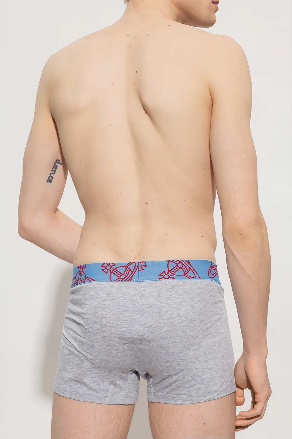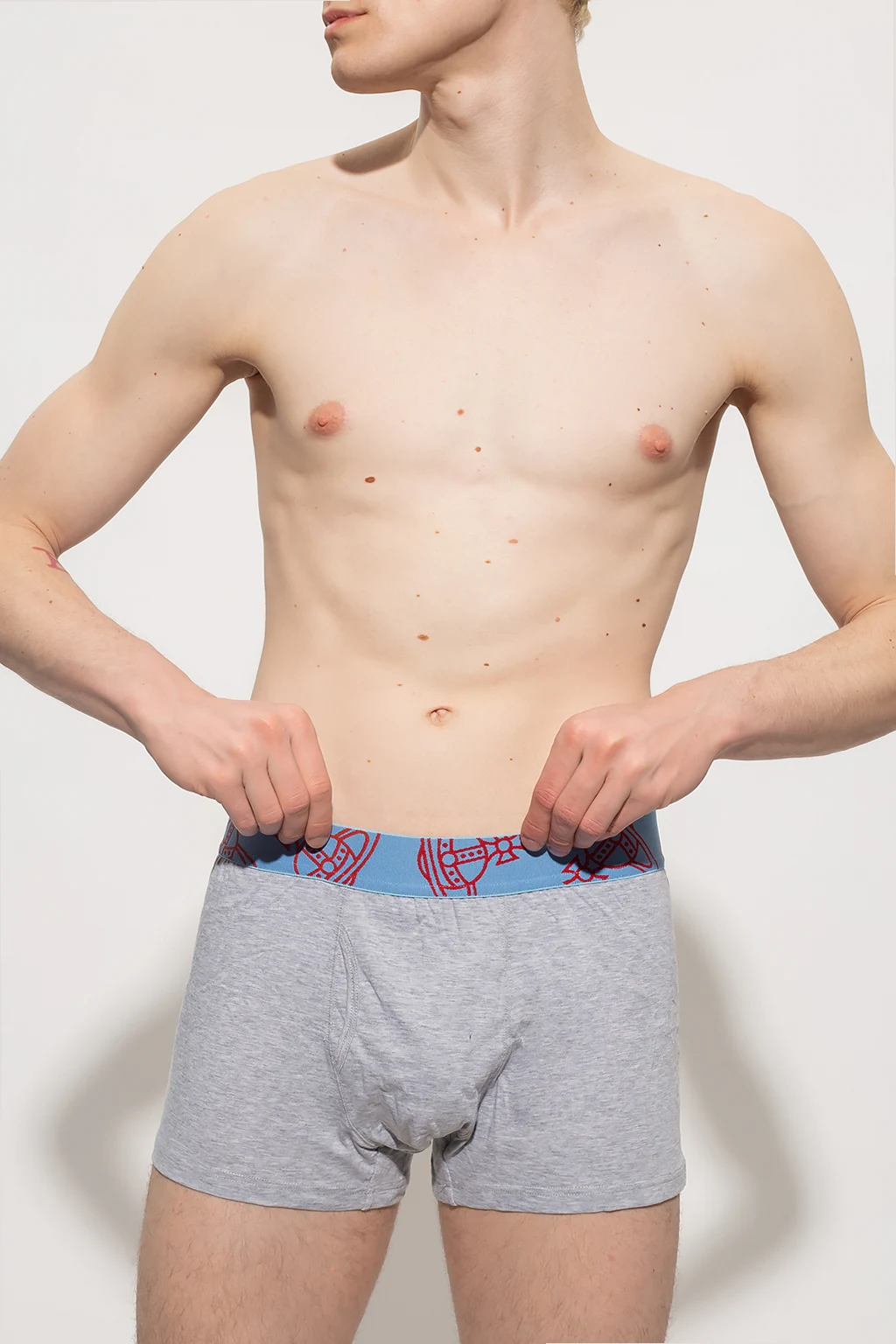 Trójpak bokserek w kolorze czarnym, białym i szarym Vivienne Westwood, kolekcja ‘Underwear’. Wykonane z bawełny organicznej. W pasie wszyta guma z logo w kolorze niebiesko-czerwonym.