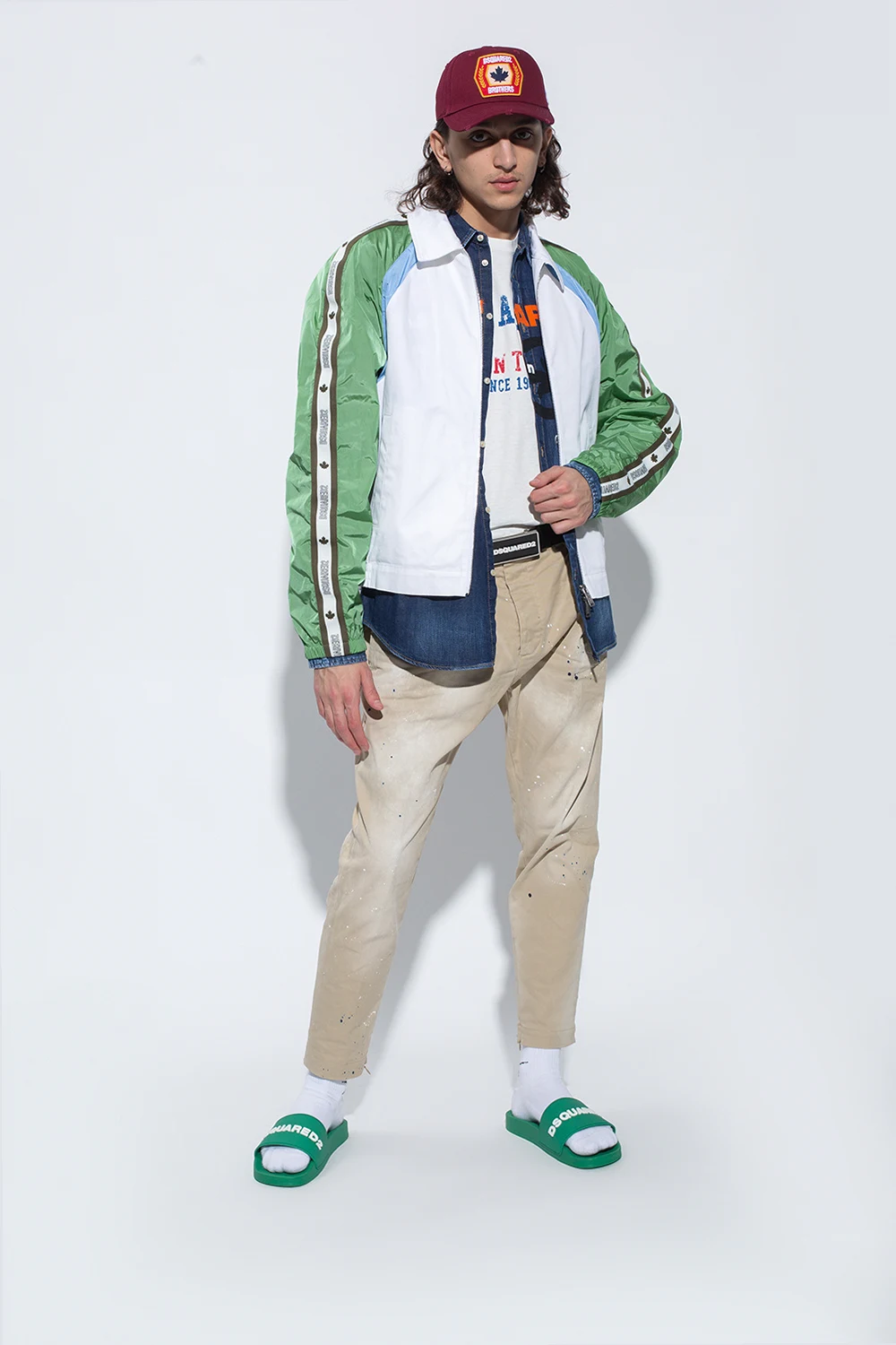 Zielone, gumowe klapki Dsquared2. Z przodu białe wypukłe logo.