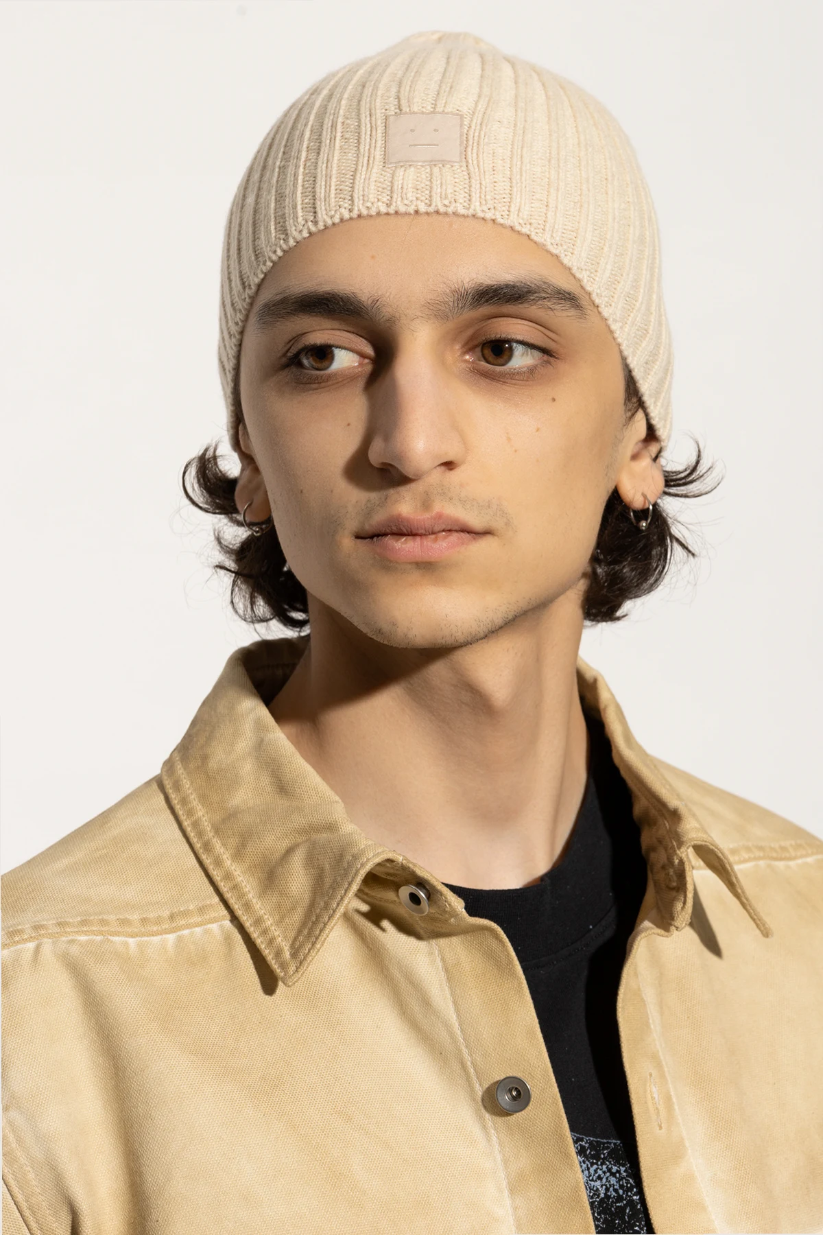 Charakterystycznym elementem jest minimalistyczna naszywka z subtelnym wzorem przypominającym twarz, co dodaje czapce niepowtarzalnego uroku. Kremowy kolor nadaje jej elegancji i wszechstronności, czyniąc ją idealnym dodatkiem do każdej stylizacji.