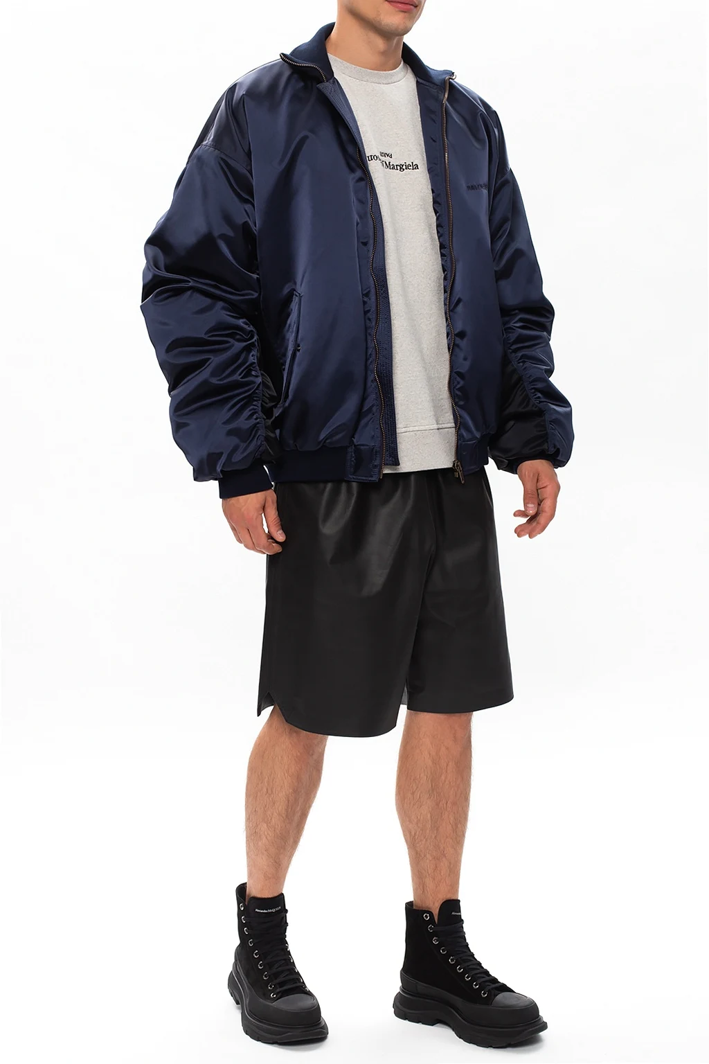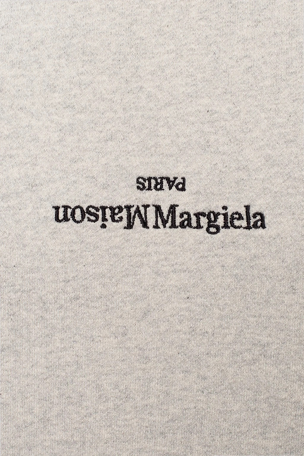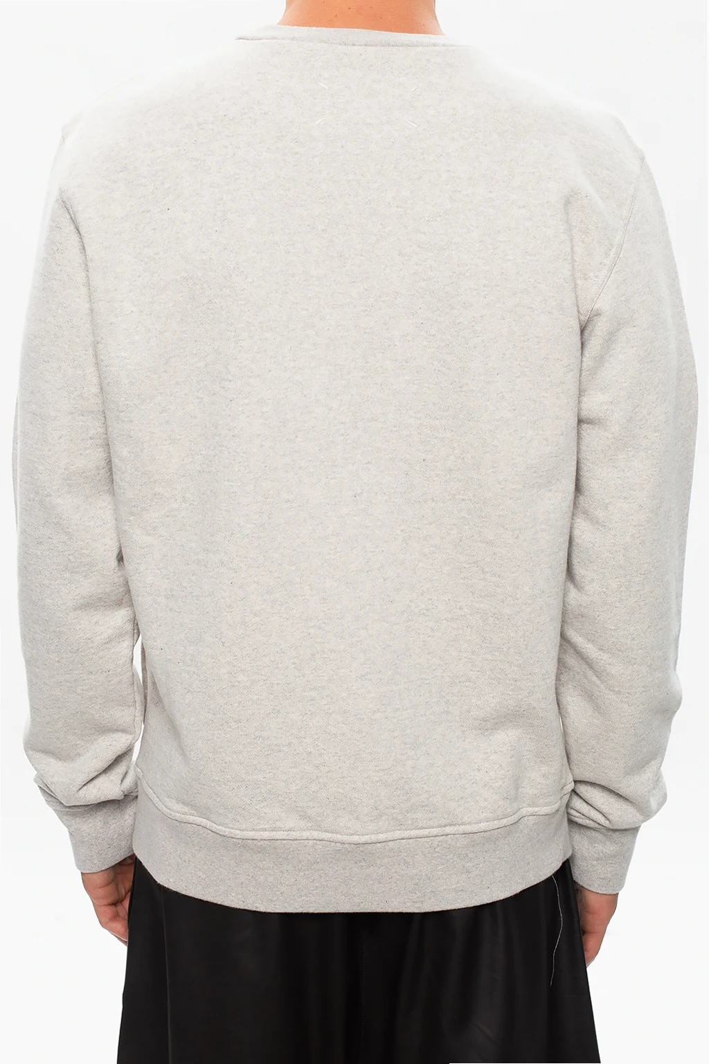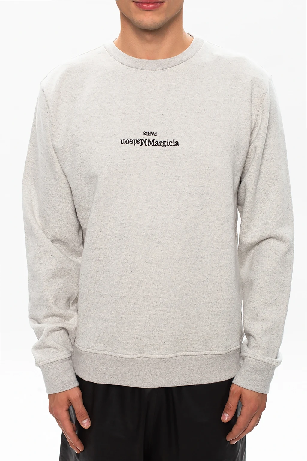 Szara, bawełniana bluza Maison Margiela. Ozdobiona wyszytym logo w kolorze czarnym. Okrągły dekolt. Dół oraz rękawy zakończone ściągaczami.