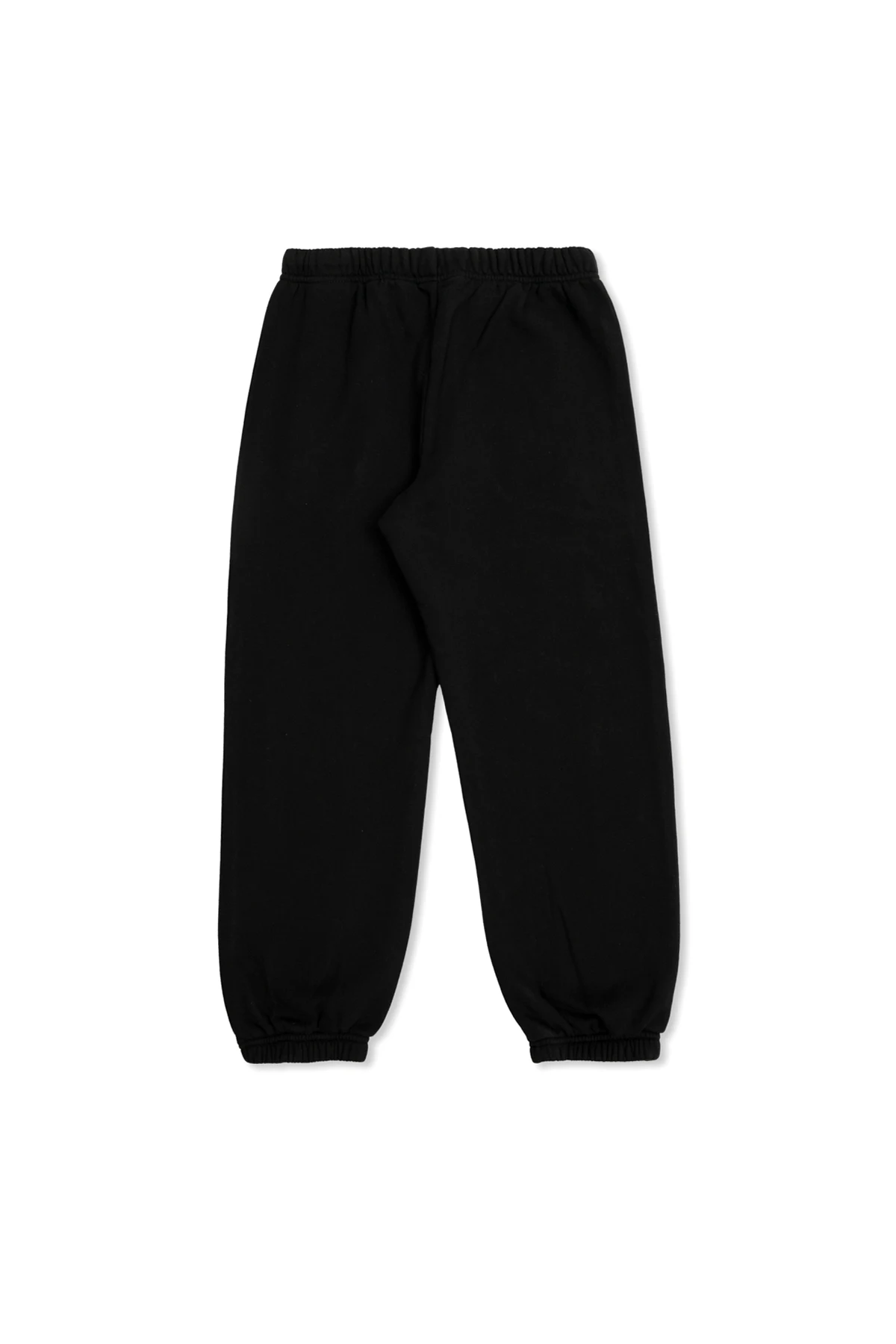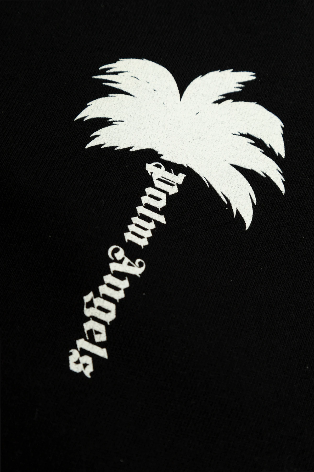 Spodnie mają klasyczny krój, idealny dla chłopców w wieku 4-14 lat. Dominujący kolor czarny doskonale współgra z białym nadrukiem przedstawiającym palmę i logo "Palm Angels", umieszczonym pionowo na przodzie. Dwie wsuwane kieszenie oraz elastyczny pas z regulowanym sznurkiem w beżowym kolorze z czarnymi akcentami zapewniają komfort noszenia. Nogawki zakończone elastycznymi ściągaczami podkreślają sportowy charakter.