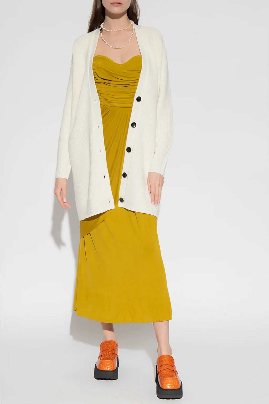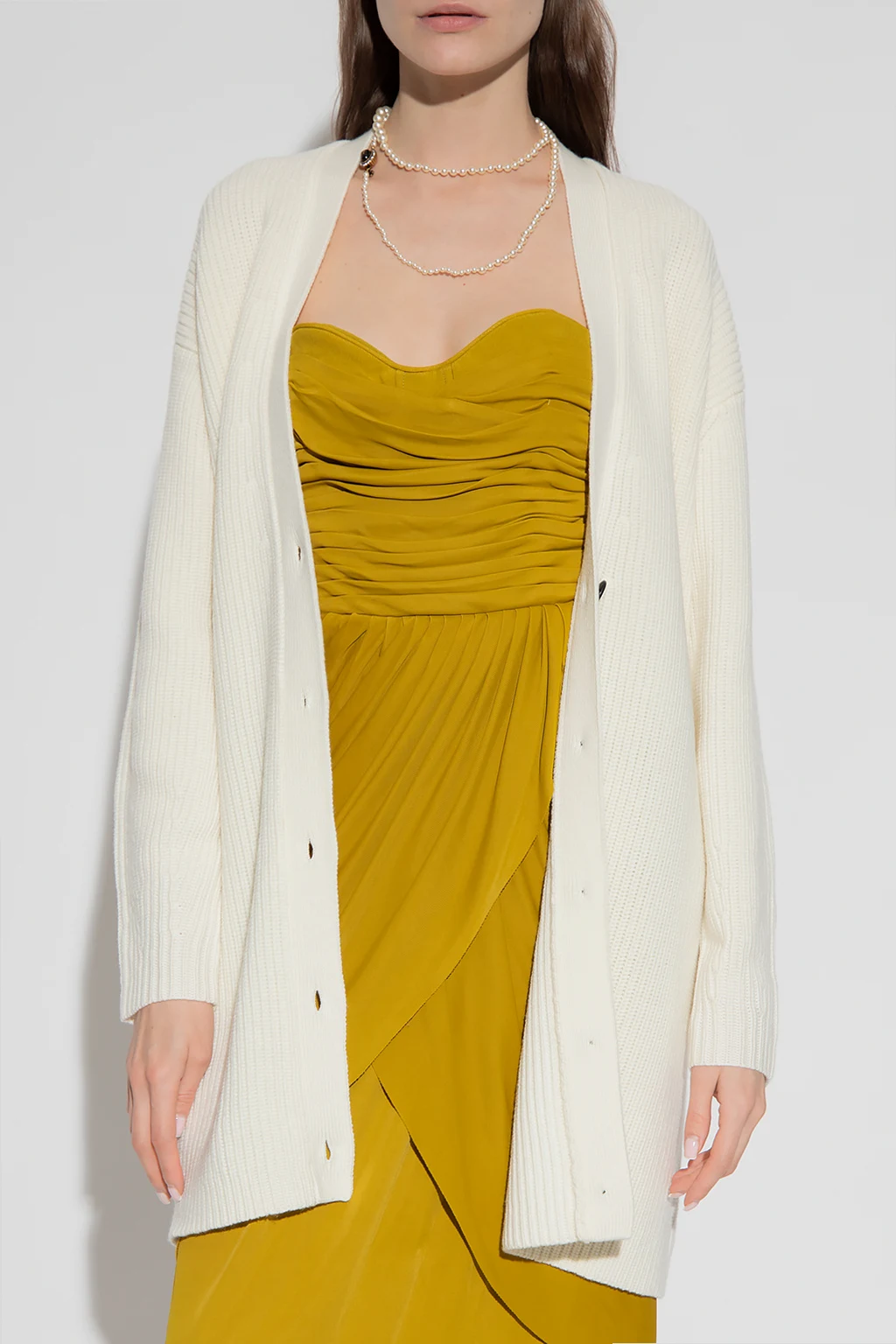 Kremowy kardigan o luźny kroju Proenza Schouler White Label. Wykonany z wełny. Zapinany na guziki. Długie rękawy.
