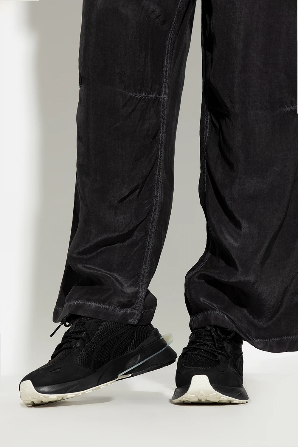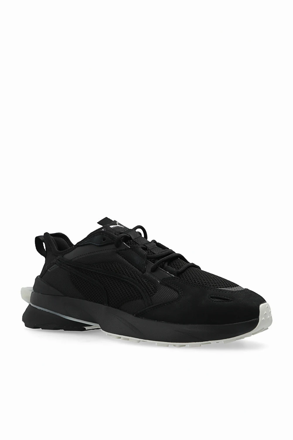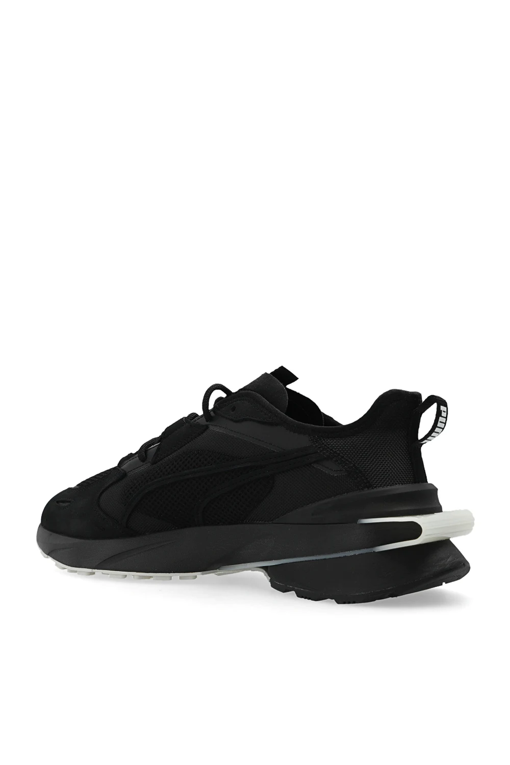 Czarne, sznurowane buty sportowe, model ‘Pwrframe’ Puma. Wykonane z materiału. Ozdobione wytłoczonym logo oraz wstawkami z siateczki. Czarna, gumowa podeszwa.
