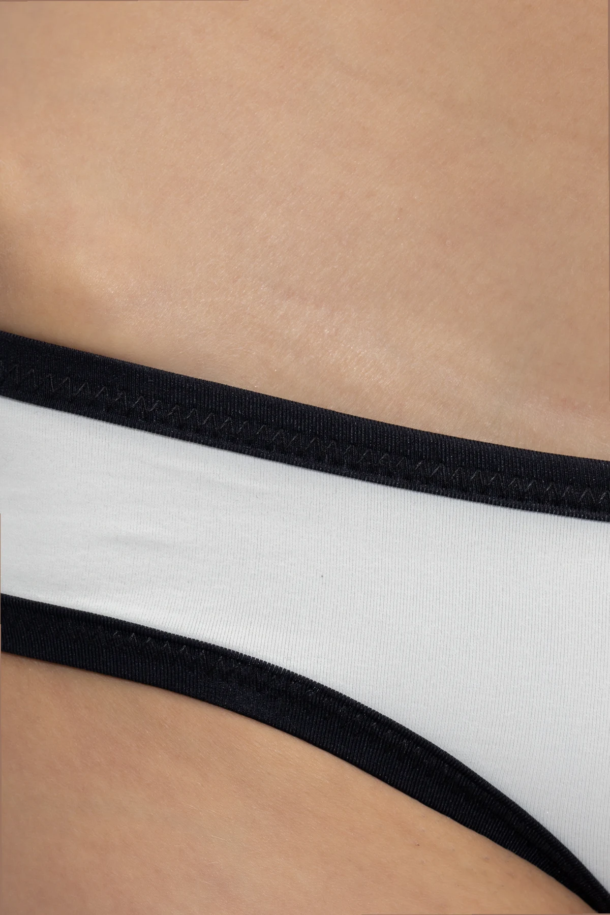 Biały dół od kostiumu kąpielowego, model ‘Ligne’ Marysia. Wykończony czarną lamówką.