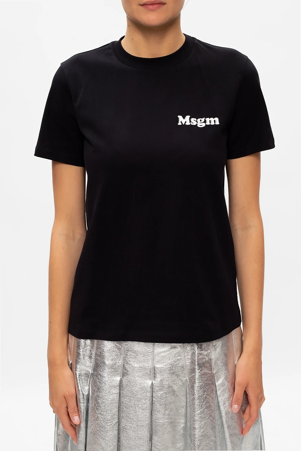 Czarny, bawełniany t-shirt MSGM. Z przodu nadrukowane białe logo. Okrągły dekolt. Krótkie rękawy.