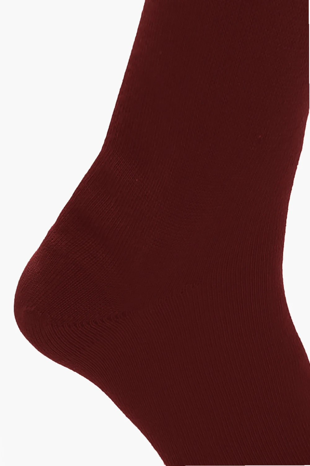 Bordowe skarpety Maison Margiela. Wykonane z wełny. Charakterystyczne dla marki wycięcie na palce ‘Tabi’. Zakończone ściągaczami.