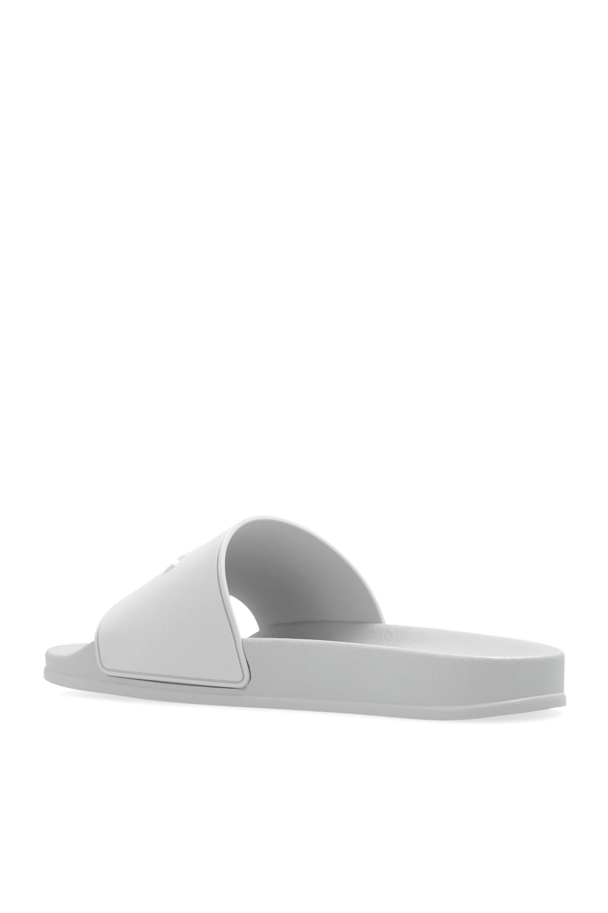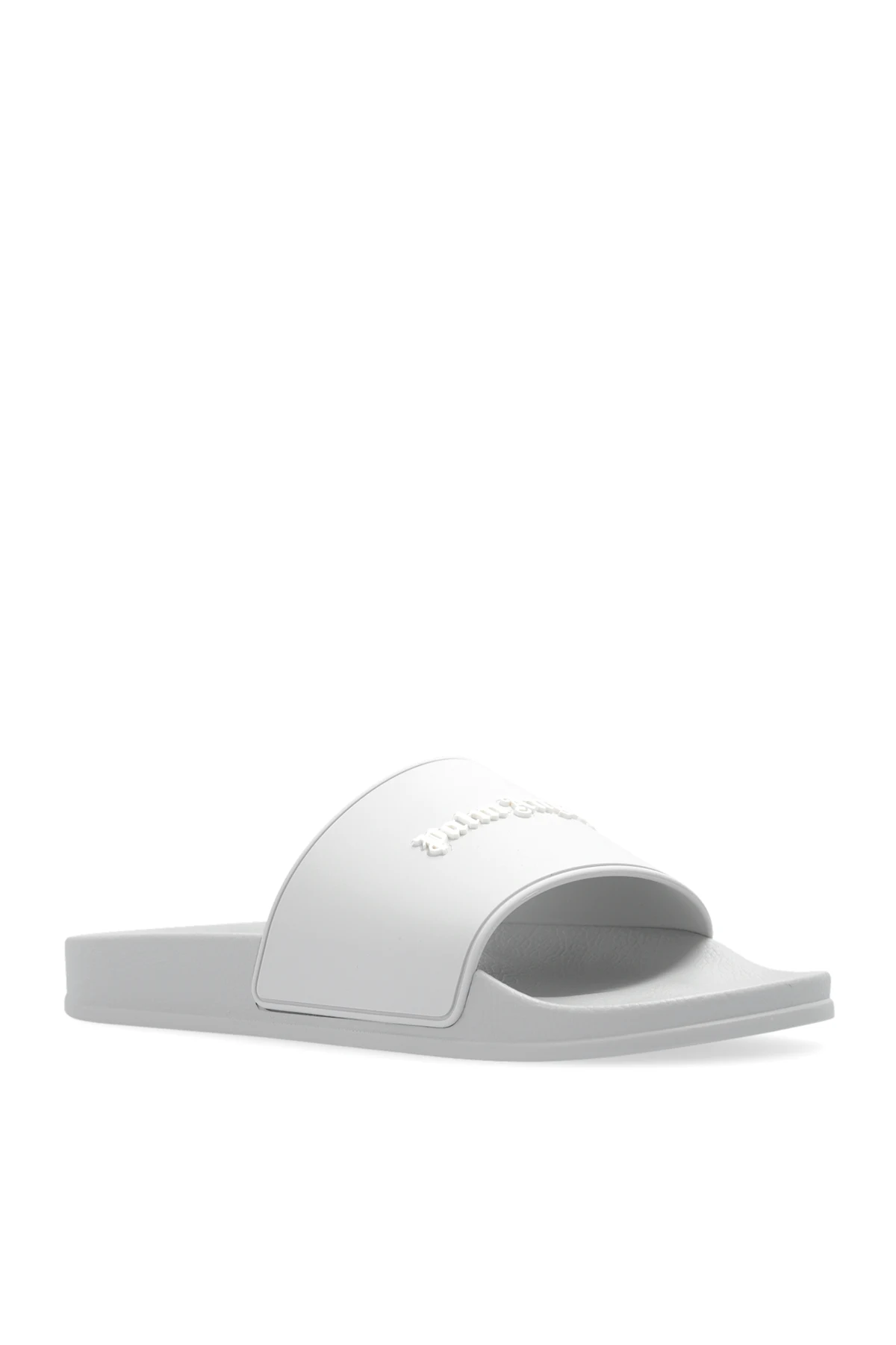 Jasnoszare, gumowe klapki Palm Angels. Z przodu ozdobione białym wypukłym logo.